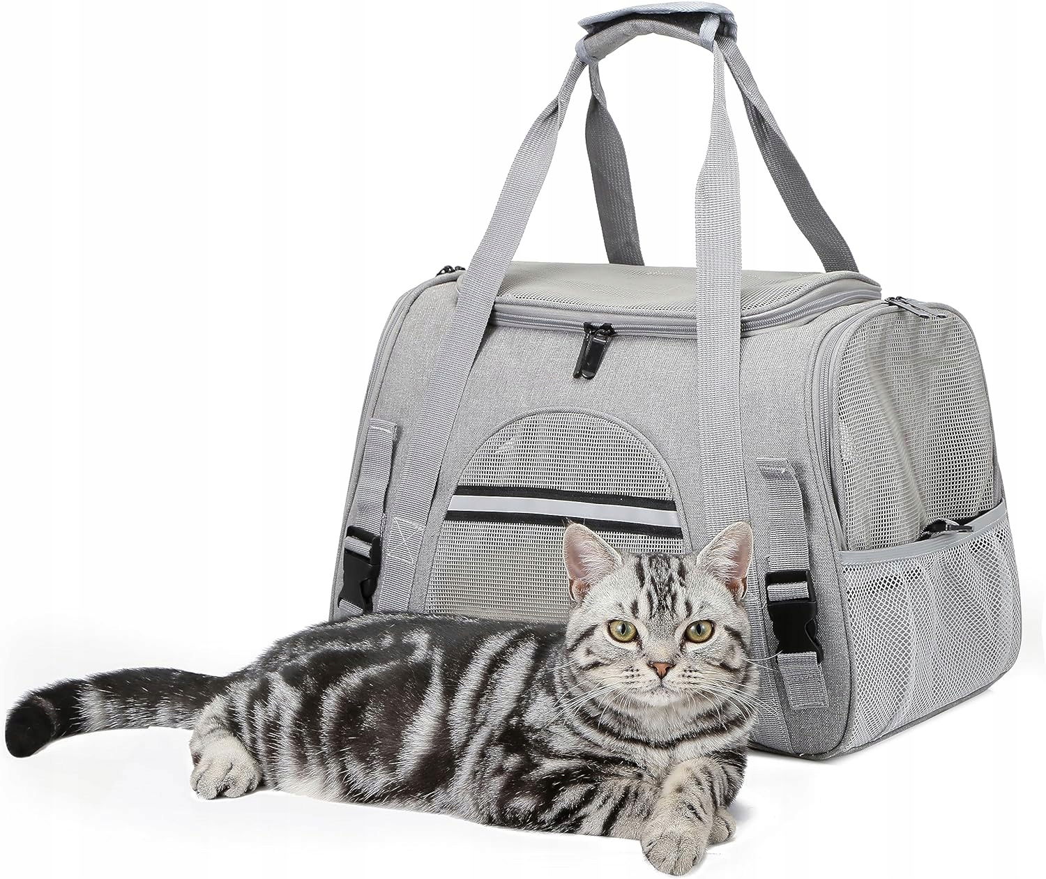 Łatwy i wietrzny dostęp: Siatkowe okna na na górze i na 4 stronach zapewniają optymalną cyrkulację powietrza. Niektóre mają zamki błyskawiczne, które szybko dotrzeć do Twojego zwierzaka, aby go pocieszyć, dotykać lub schować lub wyjąć.