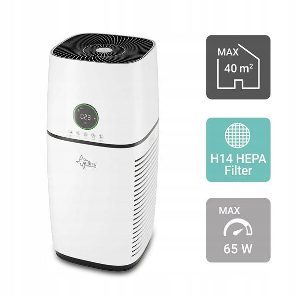 Ten model oczyszczacza powietrza gwarantuje wielokrotną wymianę powietrza na godzinę (ok. 455³/h) w pomieszczeniach o powierzchni 30-40 m².