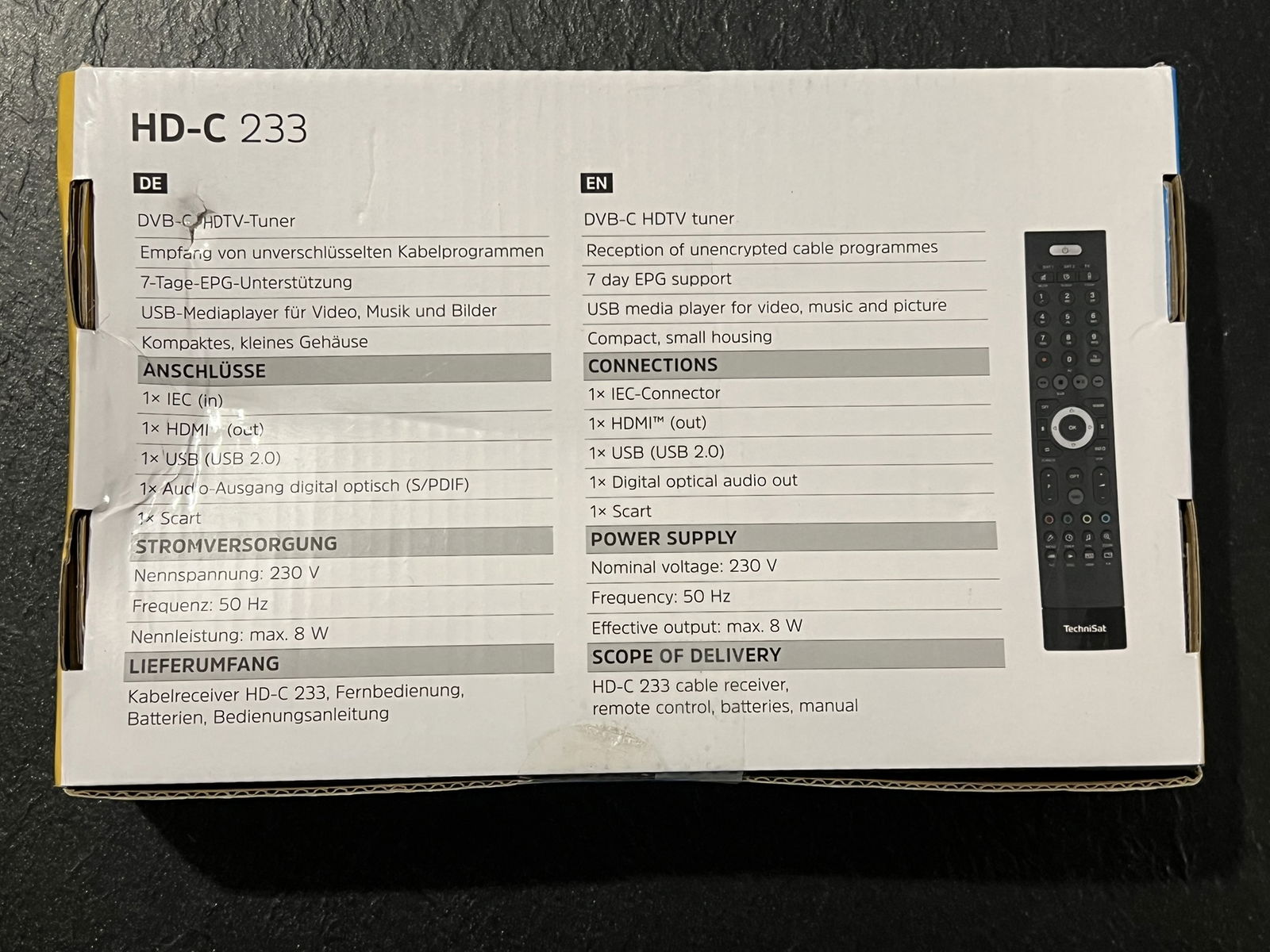 TechniSat HD-C 233 - odbiornik HD do cyfrowej telewizji kablowej (HDTV, DVB-C, HDMI, SCART, USB 2.0, RF in, EPG, pilot zdalnego sterowania), czarny