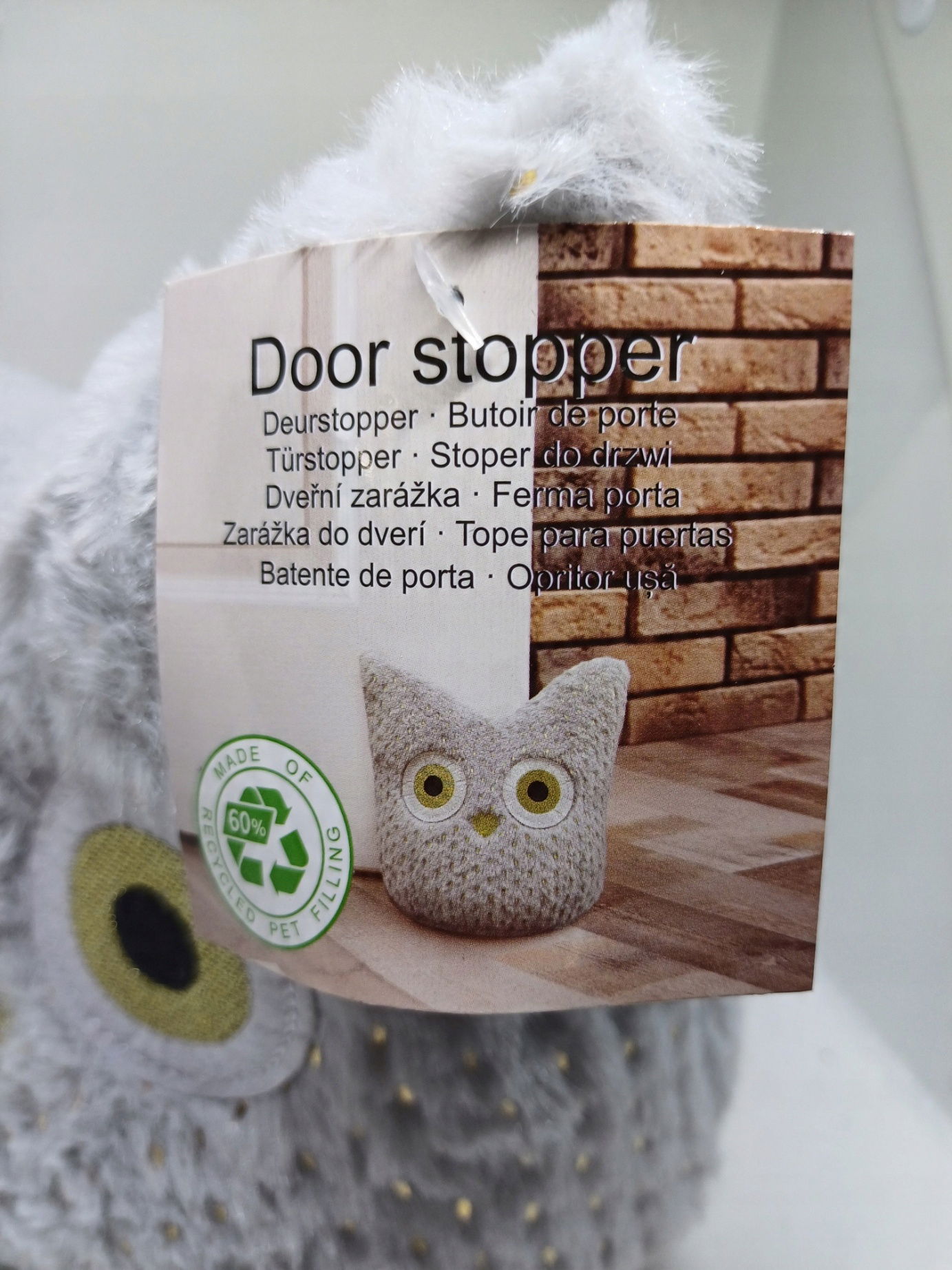 Odbojnik wolnostojący STOPER DO DRZWI 1KG 20cm UROCZA SÓWKA DEKO SZARA