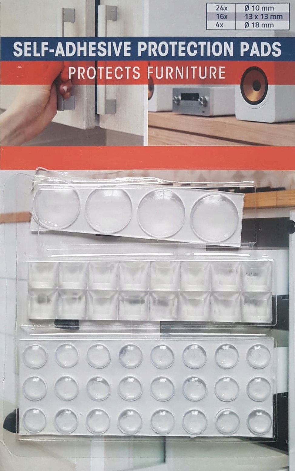 Podkładki silikonowe z powodzeniem tłumią hałas przy zamykaniu drzwi i szuflad. Zapobiegają przesuwaniu, ślizganiu się lub zniszczeniu różnych przedmiotów np. drobnego sprzętu kuchennego, odbiorników radiofonicznych, głośników kolumnowych itp. Doskonale chronią delikatne powierzchnie przed zarysowaniem podczas przesuwania np. mebli. Opakowanie zawiera 46 szt. okrągłych podkładek w trzech rozmiarach: