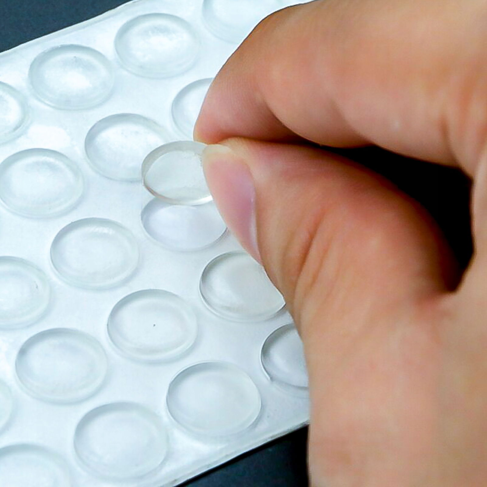 ODBOJNIKI GUMOWE SILIKONOWE SAMOPRZYLEPNE TRANSPARENTNE KWADRATY 44 sztuk