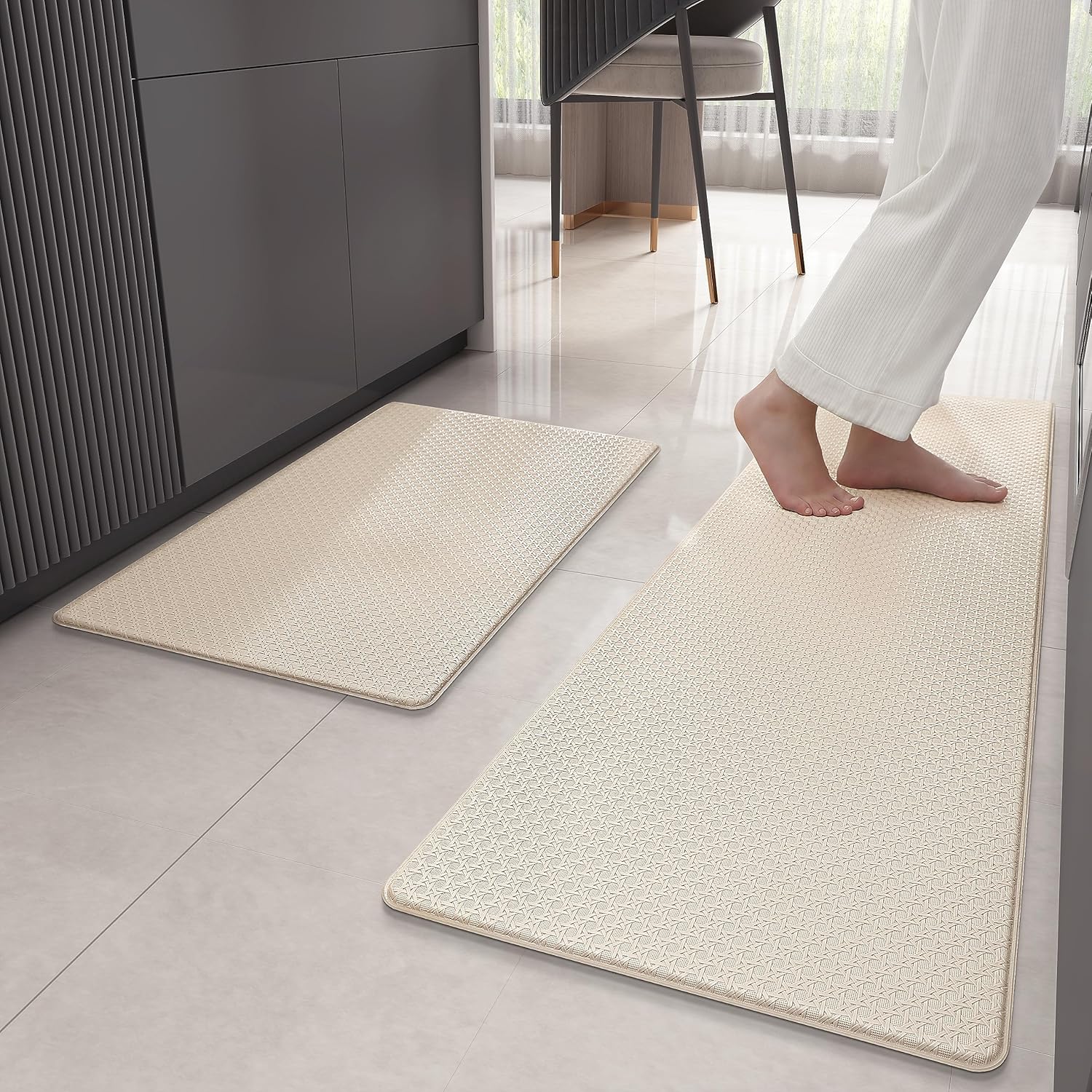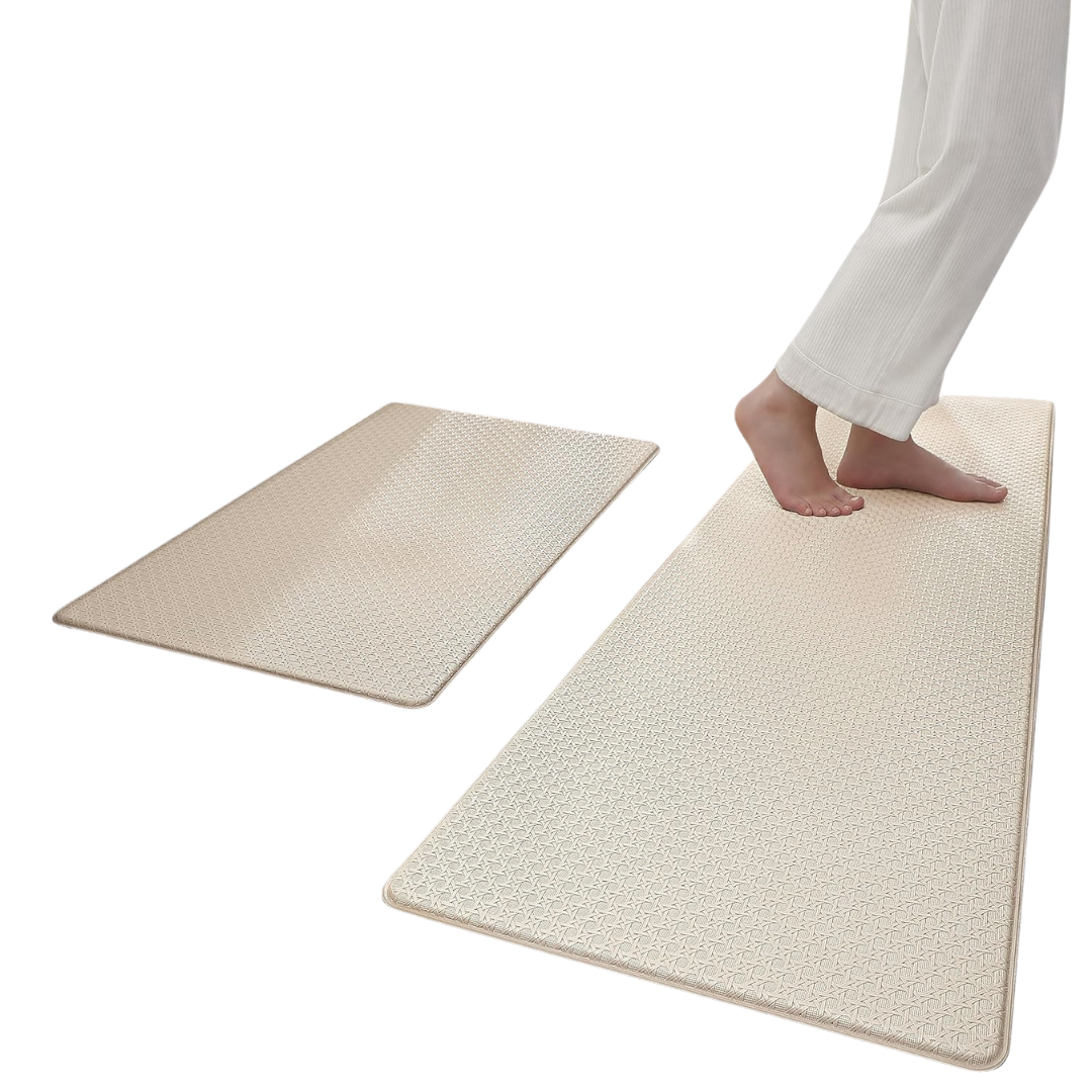 Color G 2-częściowy zestaw antypoślizgowych, zmywalnych, przeciwzmęczeniowych dywaników kuchennych – wytrzymałe, wodoodporne, łatwe do czyszczenia (44x75 cm + 44x150 cm, beżowe)