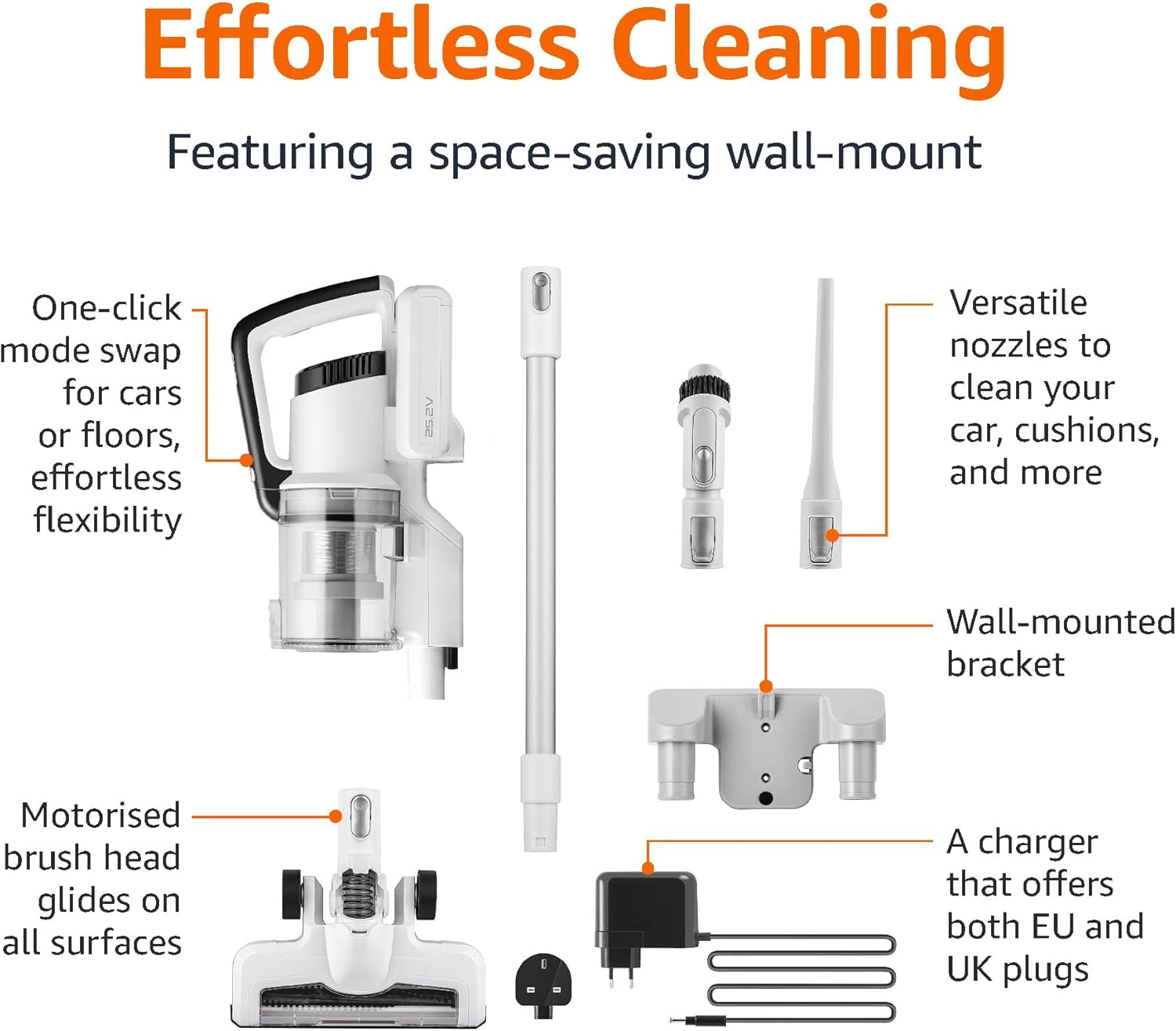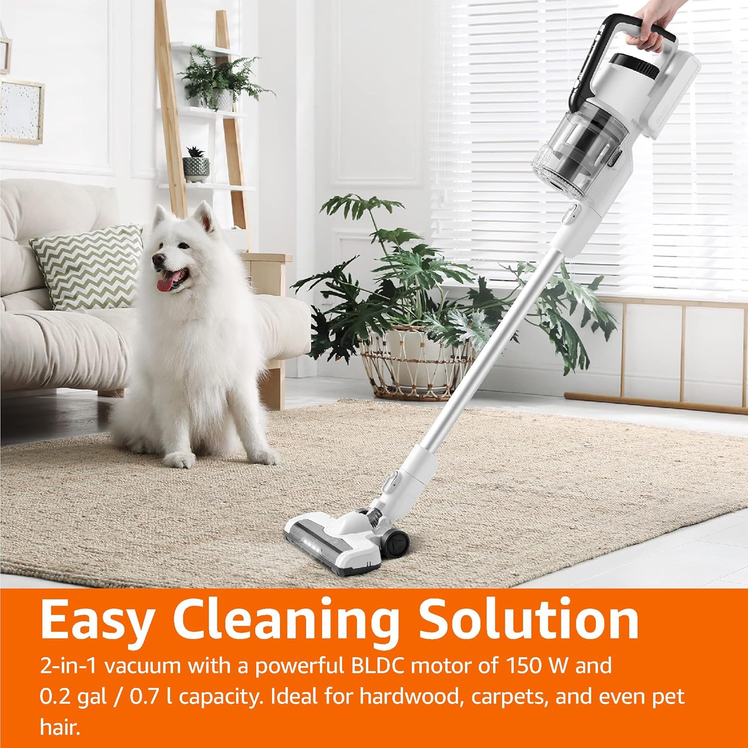 Amazon Basics Akku-Staubsauger, 2-in-1-Gerät, mit DC-Motor, 150 W, 0,7 l, Weiß/Schwarz
