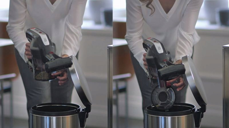 Kurz zbierany jest do specjalnego pojemnika, który po zapełnieniu wystarczy opróżnić, a w razie konieczności można umyć pod bieżącą wodą.