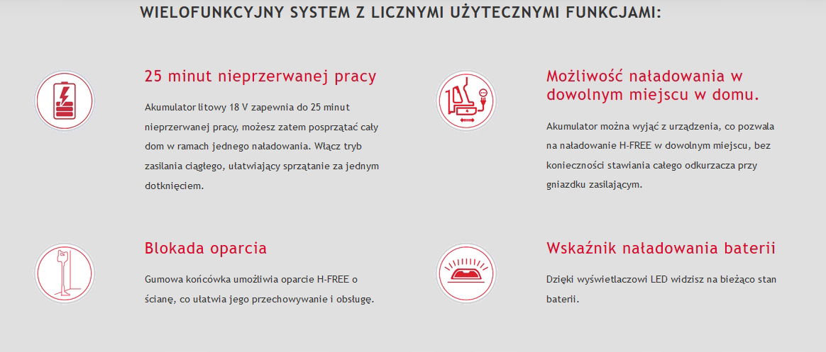 Hoover H-Free to idealne rozwiązanie na szybkie nieplanowane sprzątanie. Jest dostępny zawsze pod ręką bez potrzeby ciągania za sobą plączącego się kabla.