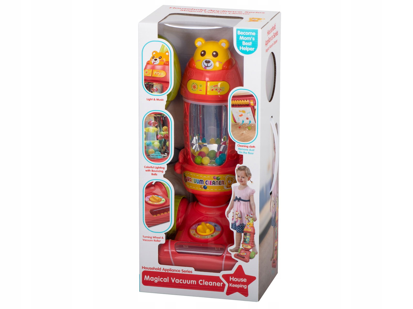 Zabawa odkurzaczem pozwala dziecku na uczestniczenie w codziennych czynnościach domowych w bezpieczny sposób, dając tym samym wiele radości.