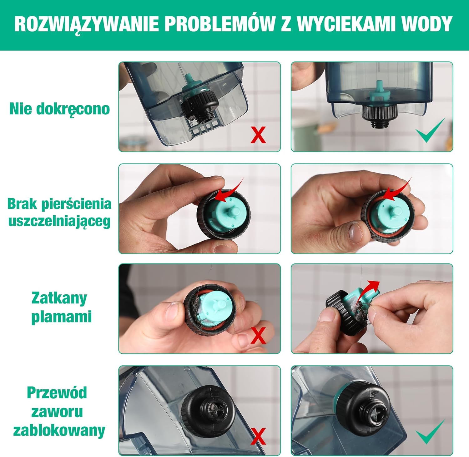✅ Zabezpieczenie przed wyciekiem – używaj niskopieniących się środków czyszczących