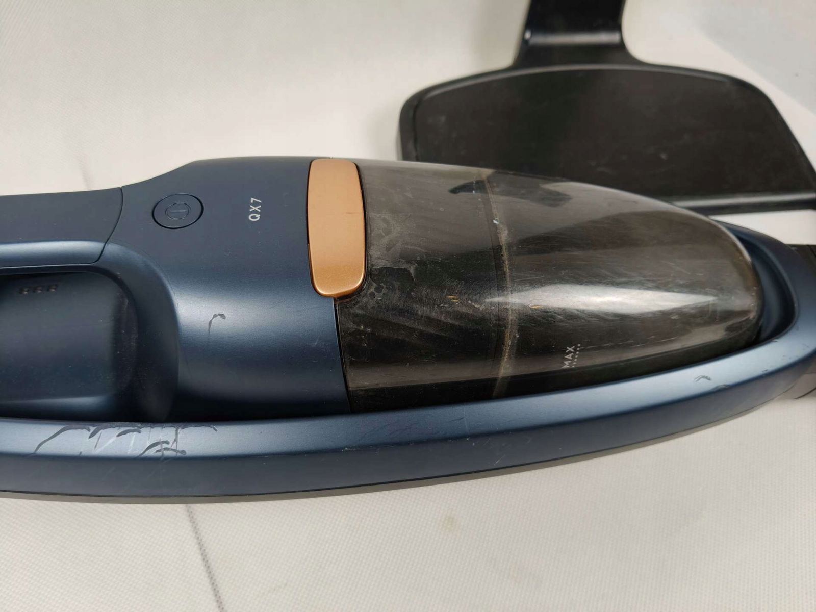 Odkurzacz wystawiony jest jako uszkodzony ze względy na ułamany plastikowy element (widoczny na zdjęciu w galerii) jednostka jest sprawna, można używać jako krótkiego odkurzacza do auta, ewentualnie do naprawy lub na części zamienne.