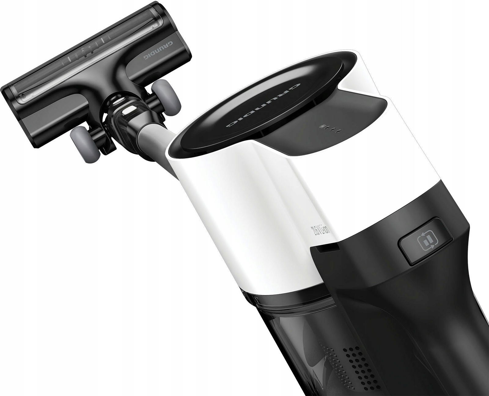 GRUNDIG VCP 4130 2 w 1 akumulatorowy odkurzacz z trzonkiem, 2 poziomy siły ssania, silnik 110 W, akumulator litowo-jonowy 21, 6 V, pojemność 550 ml, czas pracy do 45 minut, 80 decybeli, biały/czarny