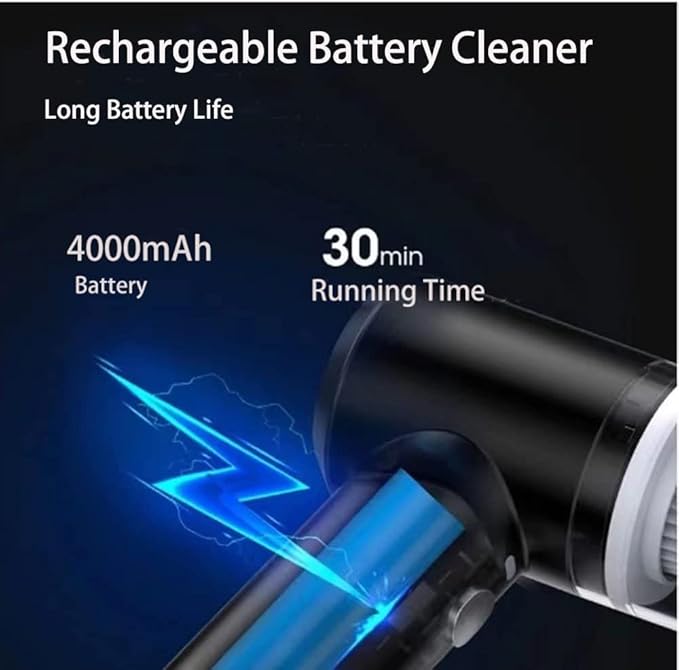 - 【SZYBKIE ŁADOWANIE】– jedno ładowanie, długi czas pracy baterii, akumulator litowo-jonowy 4000 mAh, praca ciągła przez ponad 20 minut, może pozostać w gotowości do pełnego naładowania przez 30 dni. Bezprzewodowy odkurzacz samochodowy jest dostarczany z akumulatorem litowym premium, który można szybko naładować w ciągu 3-5 godzin i zapewnia bardzo długi czas czyszczenia.