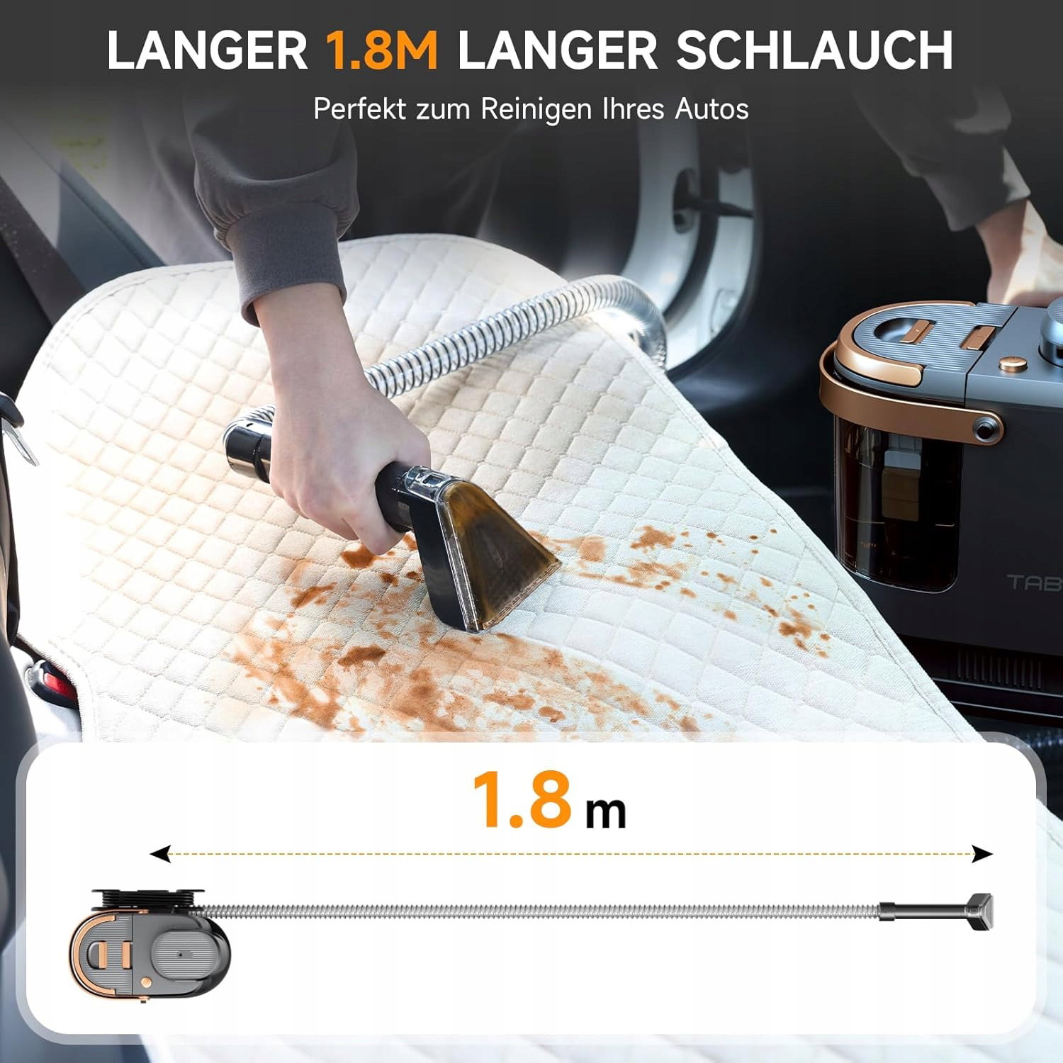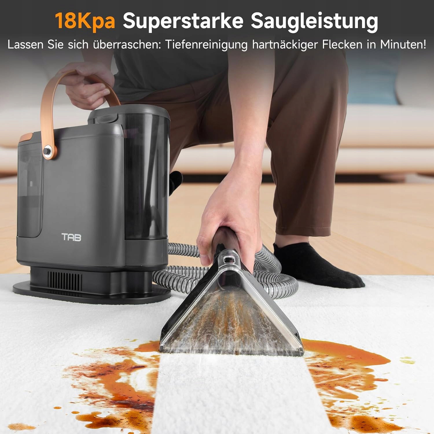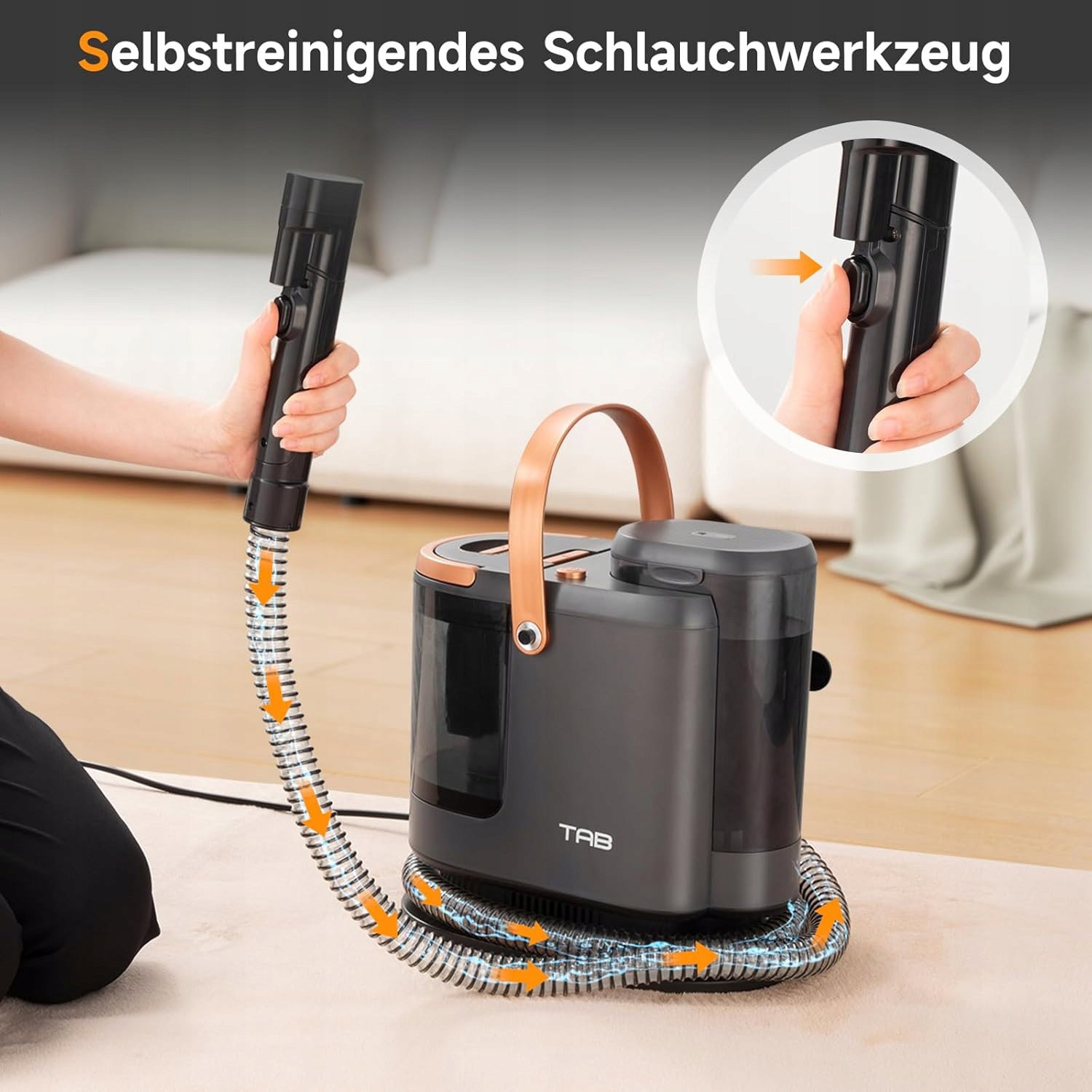 Zadbaj o świeżość i higienę swoich dywanów, tapicerek i wnętrza samochodu z TAB R3 – wydajnym urządzeniem czyszczącym wykorzystującym gorącą wodę, technologię dwóch zbiorników oraz wyjątkowo mocne ssanie 18 kPa. To uniwersalne narzędzie idealnie sprawdzi się do czyszczenia zarówno w domu, jak i w aucie – bez konieczności wynajmowania serwisu pralniczego!