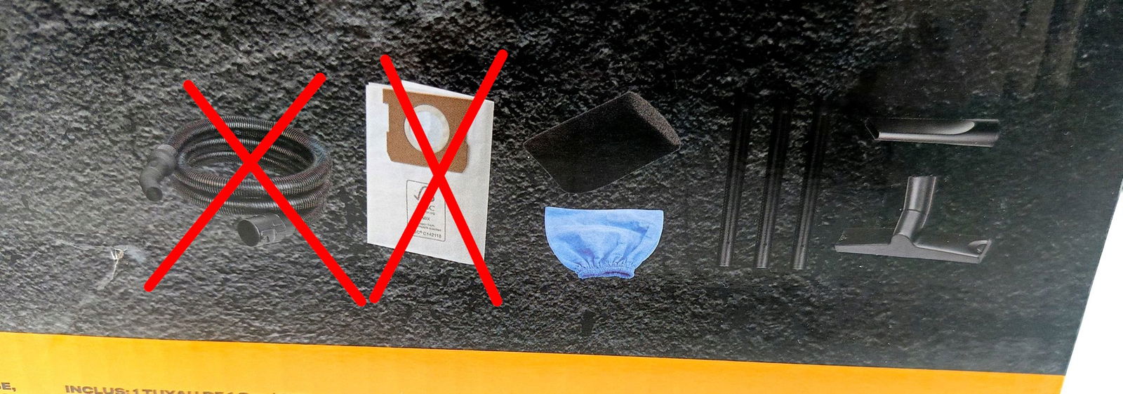 WAŻNA INFORMACJA: ODKURZACZ POSIADA BRYTYJSKĄ WTYCZKĘ (UK) – DO PRACY W POLSCE NIEZBĘDNY JEST ADAPTER. ZESTAW JEST NIEKOMPLETNY – BRAK RURY ELASTYCZNEJ ORAZ WORKA (ELEMENTY ZAZNACZONE NA ZDJĘCIACH).