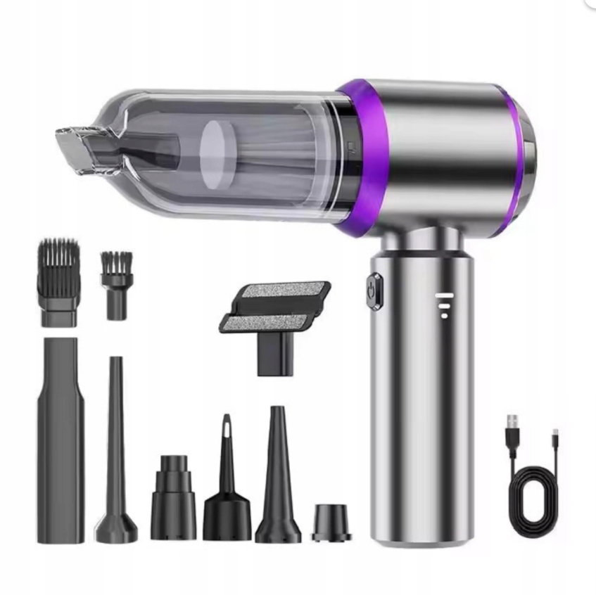 - ✴️Bezprzewodowy i ładowalny: Przenośna, bezprzewodowa konstrukcja z akumulatorem. Ten miniodkurzacz jest wyposażony w akumulator o pojemności 6000 mAh i obsługuje ładowanie przez USB typu C. Można go szybko naładować w 4 godziny za pomocą adaptera 5 V/2 A i używać przez około 30 minut. Wyposażony w kabel ładujący USB typu C, można go ładować w dowolnym miejscu przez port USB – w samochodzie lub w domu.
