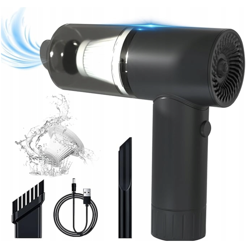 Odkurzacz samochodowy ręczny bezprzewodowy USB-C zestaw z końcówkami
