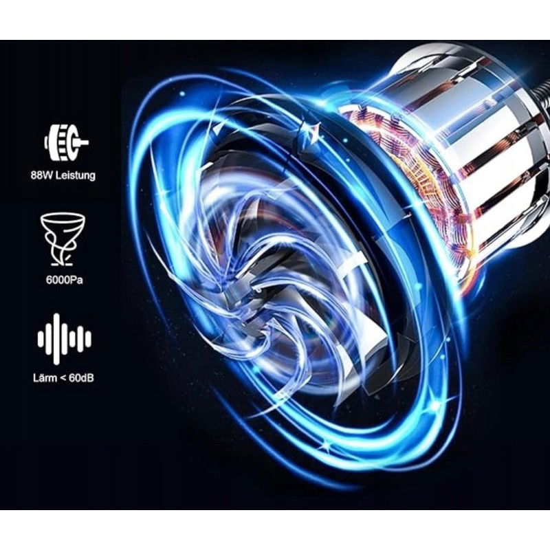 - Mocna wydajność: odkurzacz wykorzystuje silnik o mocy 88 W i mocy ssania 6000 Pa. Utrzymując siłę napędową, może również zapewnić Ci komfortowe wrażenia. Może łatwo wyczyścić ukryty kurz, sierść zwierząt, piasek, resztki jedzenia, niewielką ilość płynu, drobiazgi ukryte w fotelu samochodowym lub sofie.