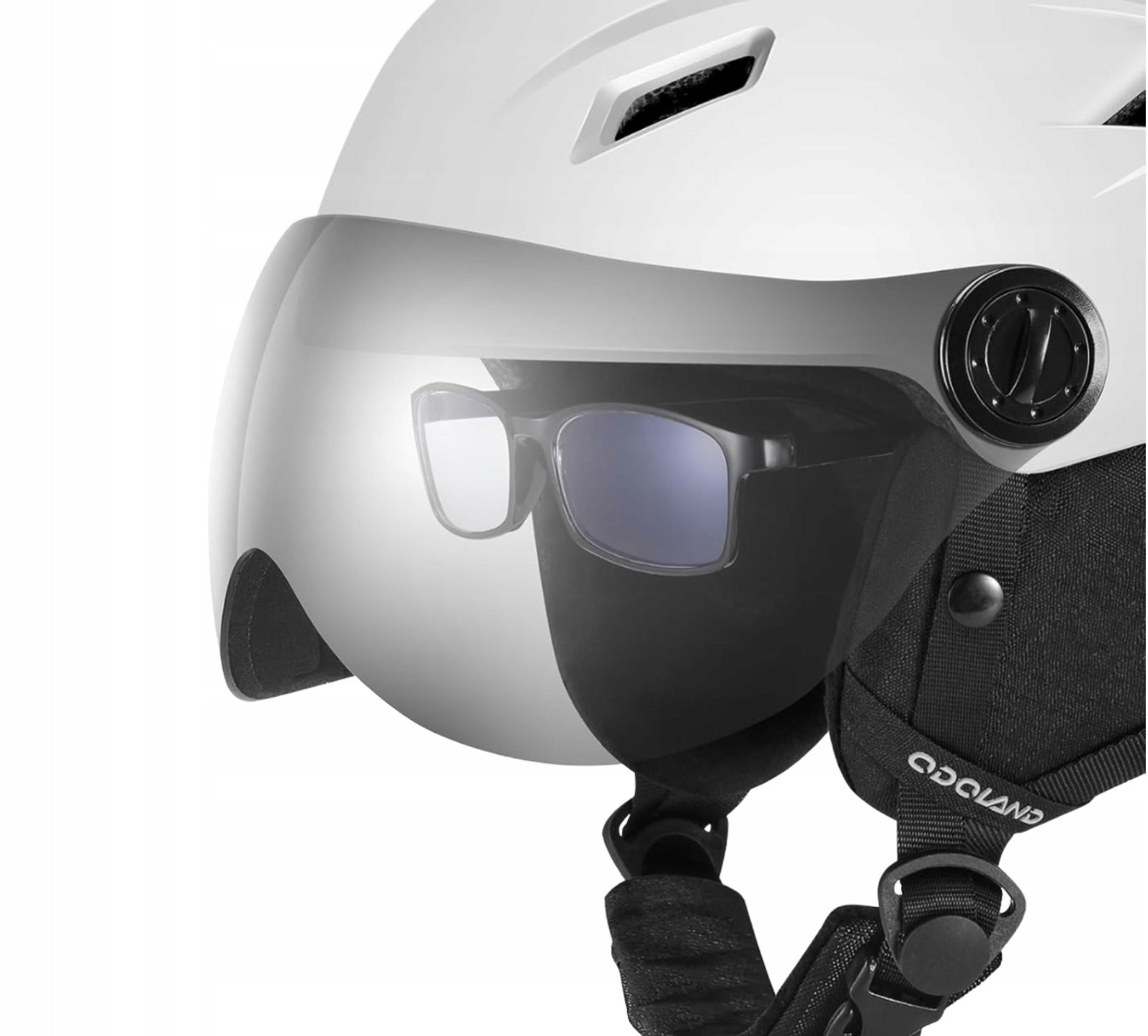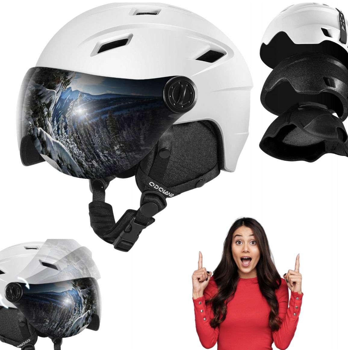 Odoland kask narciarski z wizjerem i zdjemowane gogle UV biały r. L biały