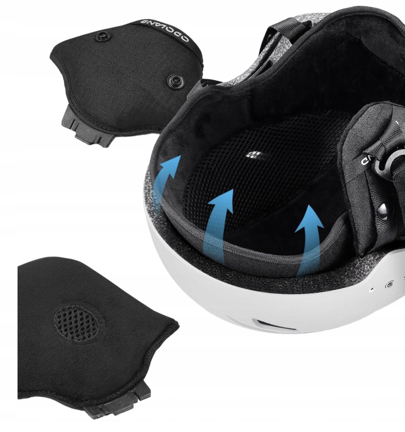 Kask ma wyjmowaną wkładkę, wyjmowaną nausznik zapewniającą ciepło i miękki pasek podbródkowy.