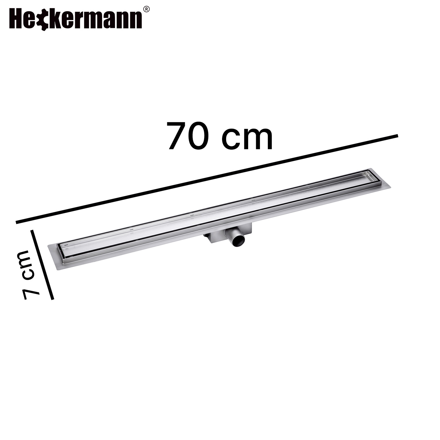Odpływ liniowy prysznicowy podłogowy Heckermann 70 cm – srebrny, stal nierdzewna SS304