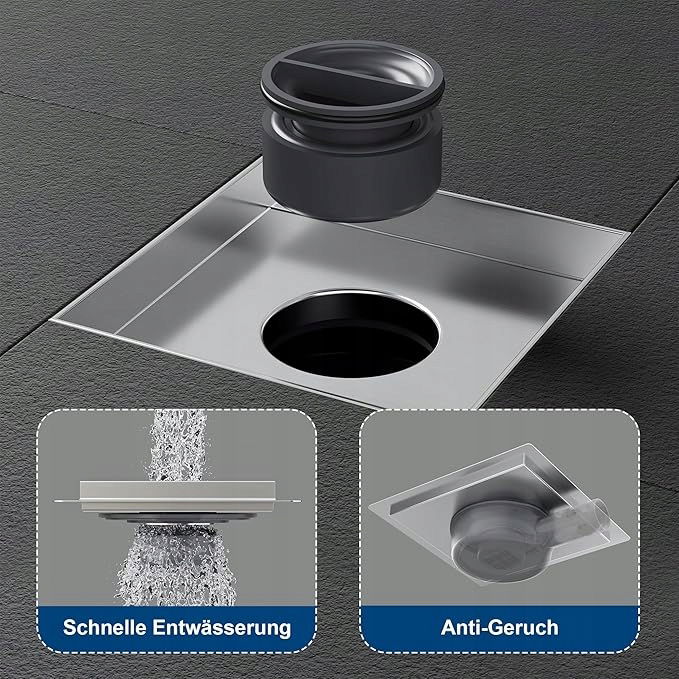 【Materiał】 Kwadratowy odpływ prysznicowy jest wykonany z wysokiej jakości stali nierdzewnej AISI 304, odpływ prysznicowy składa się również ze specjalnej technologii produkcji, aby zapobiec korozji i rdzy.