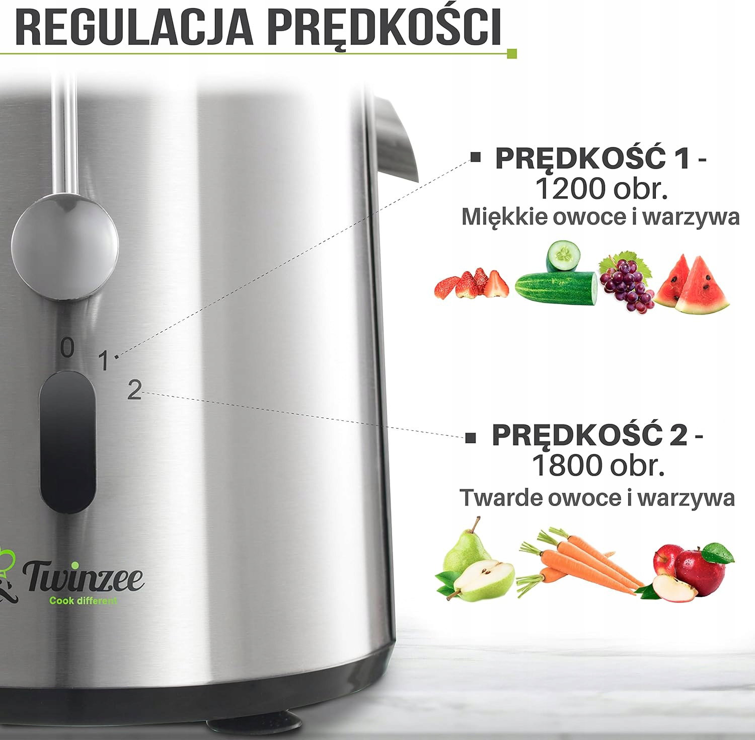 Odśrodkowa sokowirówka do warzyw 850W Twinzee-2 prędkości-szeroki podajnik