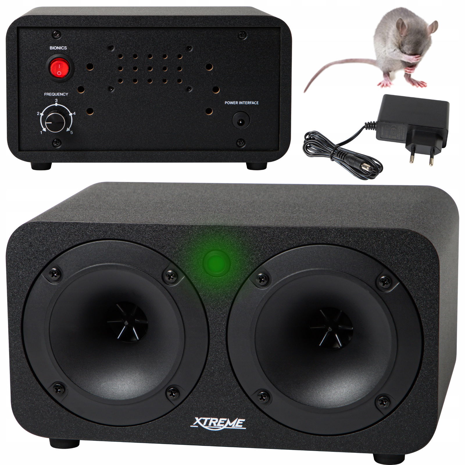 Urządzenie odstrasza dźwiękowo gryzonie takie jak myszy, szczury, kuny i inne. Świetnie sprawdzi się w zamkniętych pomieszczeniach, w każdym domu, piwnicy, garażu czy miejscu pracy. Produkt wysyła sygnały ultradźwiękowe o zmiennej częstotliwości skutecznie odstraszając szkodniki. Posiada 5 trybów pracy, 2 głośniki emitujące ultradźwięki oraz tryb bioniczny. Produkt oferuje efektywny zasięg działania wynoszący 600m².