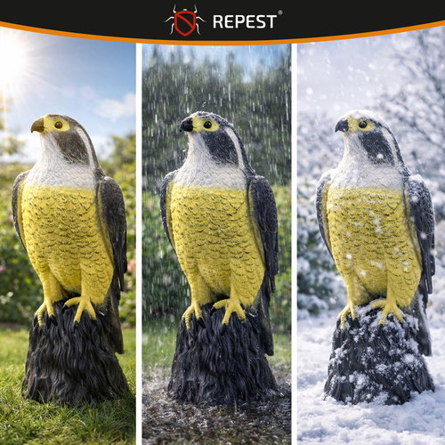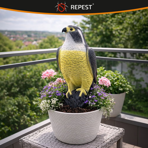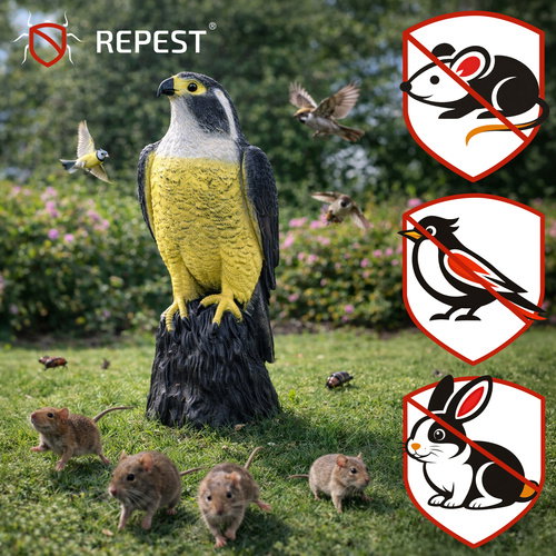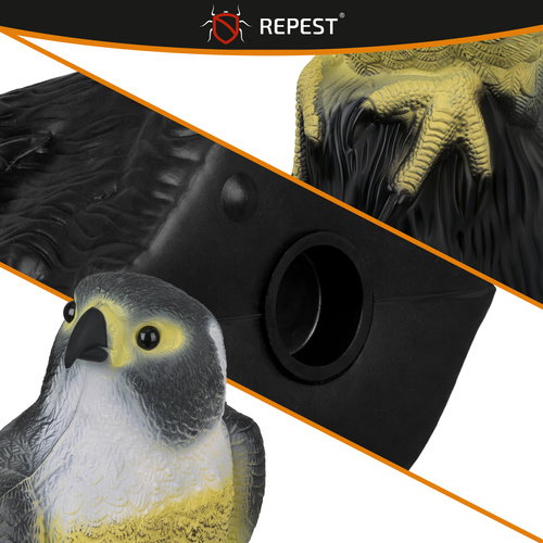- skuteczny odstraszacz sokół - realistyczna makieta sokoła odstraszającego ptaki, z wiernie odwzorowanymi detalami i naturalnym kolorem, działa odstraszająco na gołębie, szpaki, wróble, kawki, mewy, a także na nornice i myszy