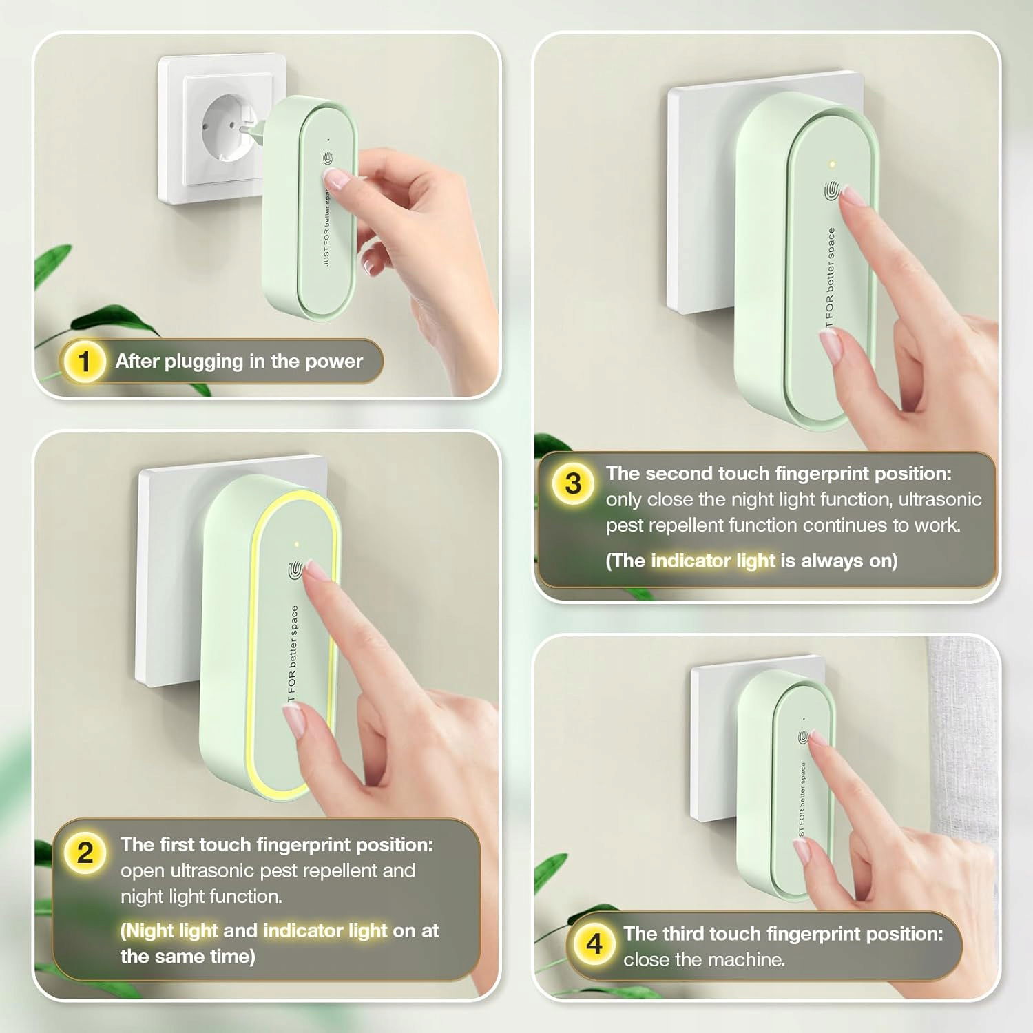 Dotykowy przełącznik linii papilarnych ułatwia obsługę, oferując intuicyjne sterowanie trybami urządzenia. Ciesz się spokojem i komfortem w swoim domu!