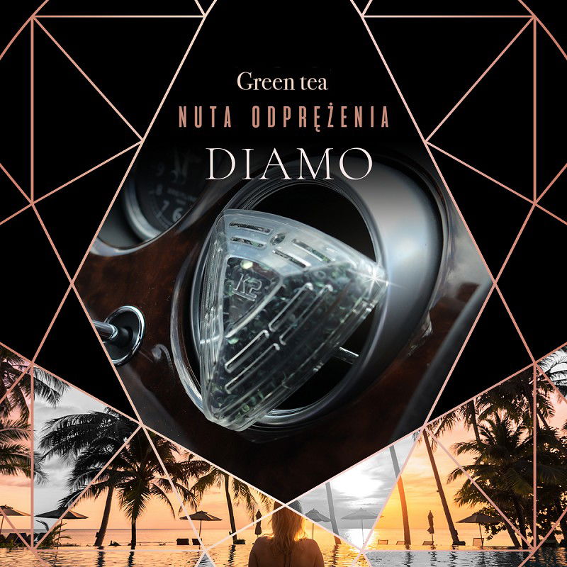K2 DIAMO GREEN TEA - szlachetny aromat zielonej herbaty to gwarancja odprężenia i relaksu, również we wnętrzu Twojego auta.