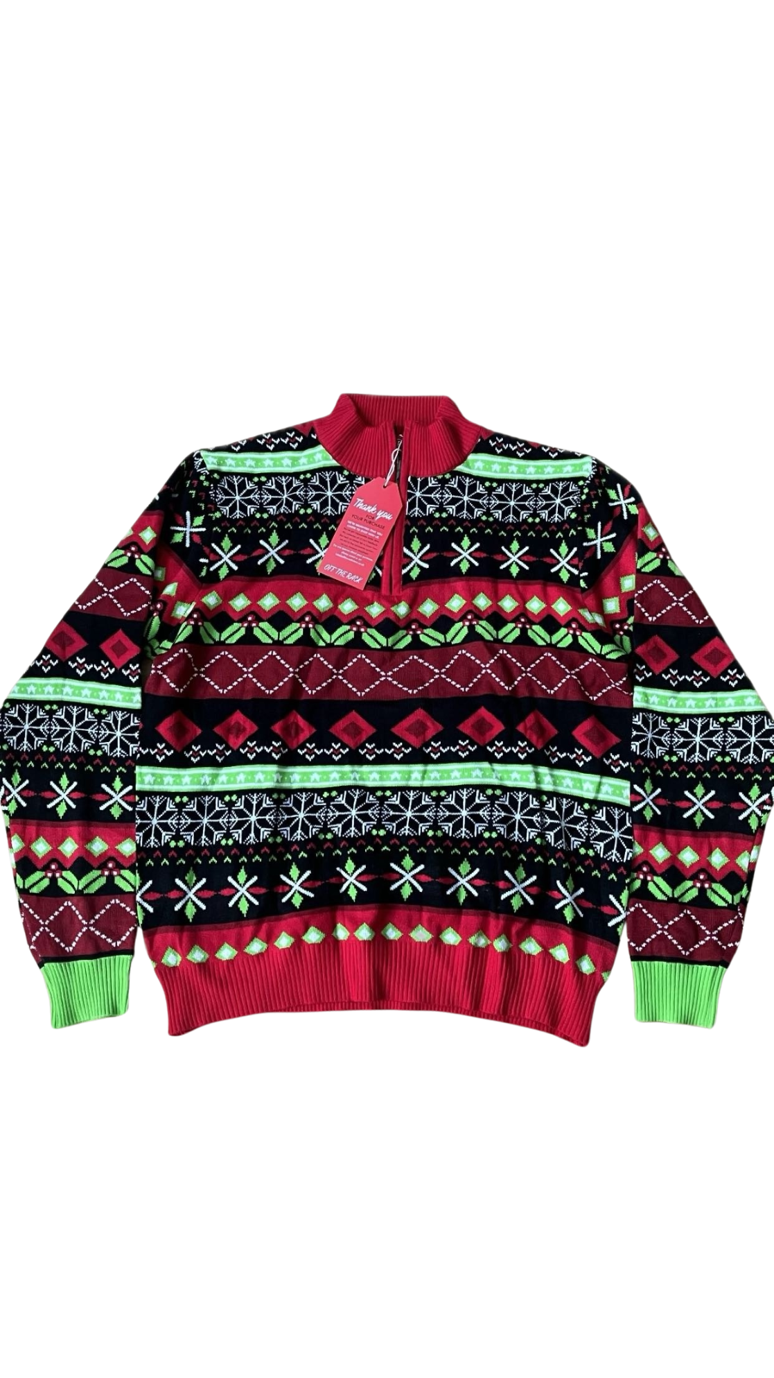 Wyjątkowy Design Świąteczny: Idealny na świąteczne imprezy, sweter łączy humor z tradycyjnymi motywami świątecznymi.