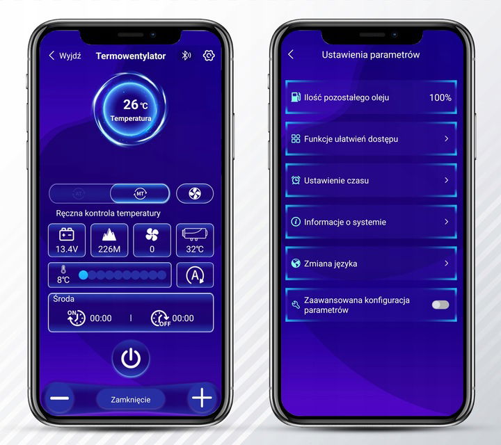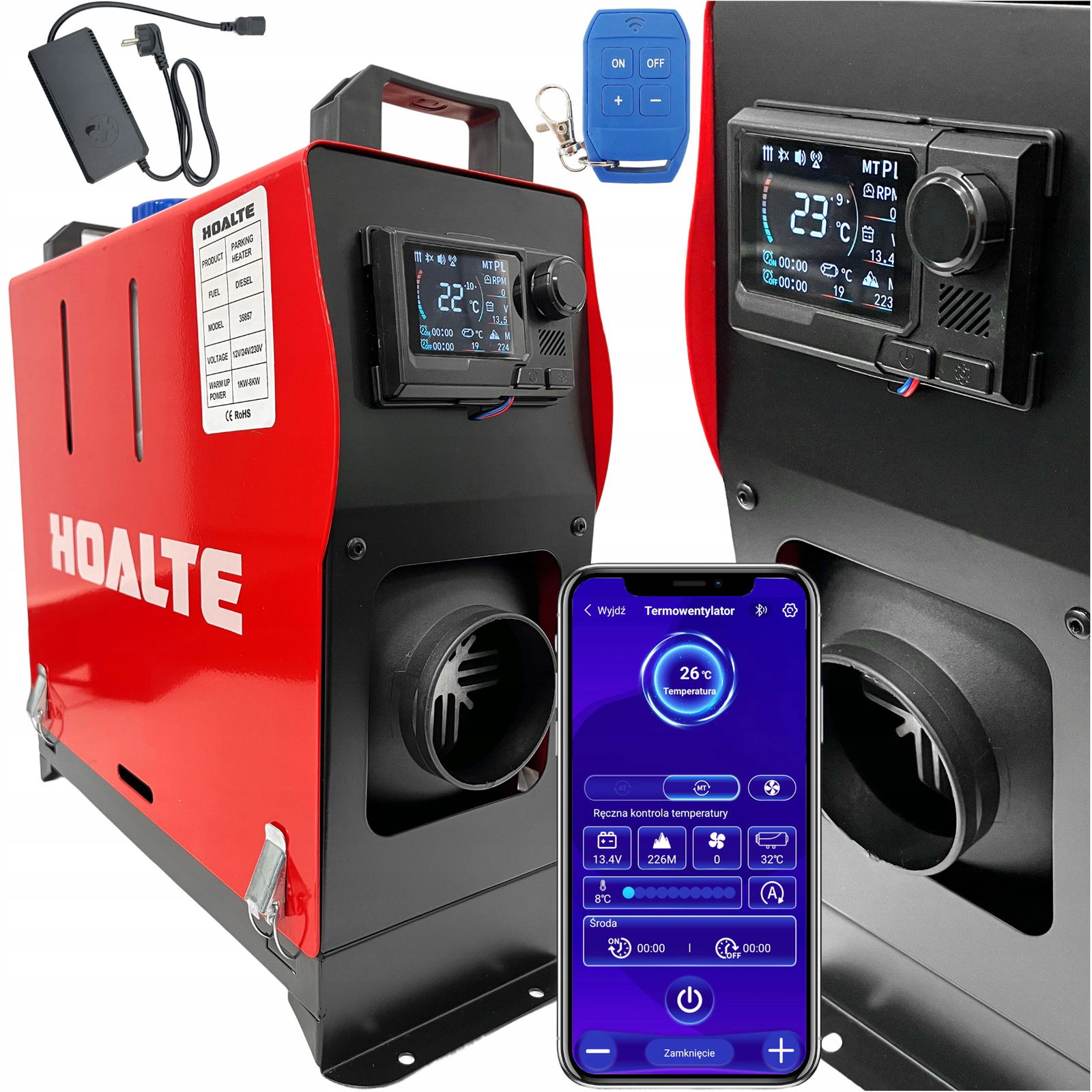 OGRZEWANIE POSTOJOWE NAGRZEWNICA OLEJOWA DIESEL ON 8kW 12V 24V 230V LCD BT