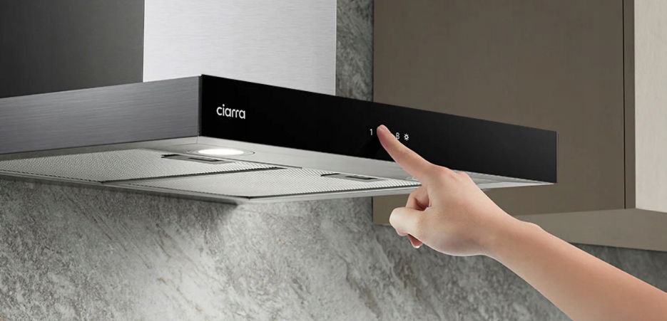 Za pomocą dotykowego panelu sterowania można łatwo przełączać 4 różne poziomy prędkości wentylatora i sterować oświetleniem. Możesz wybrać różne poziomy mocy ssania, aby utrzymać kuchnię w czystości od gotowania na grillu.