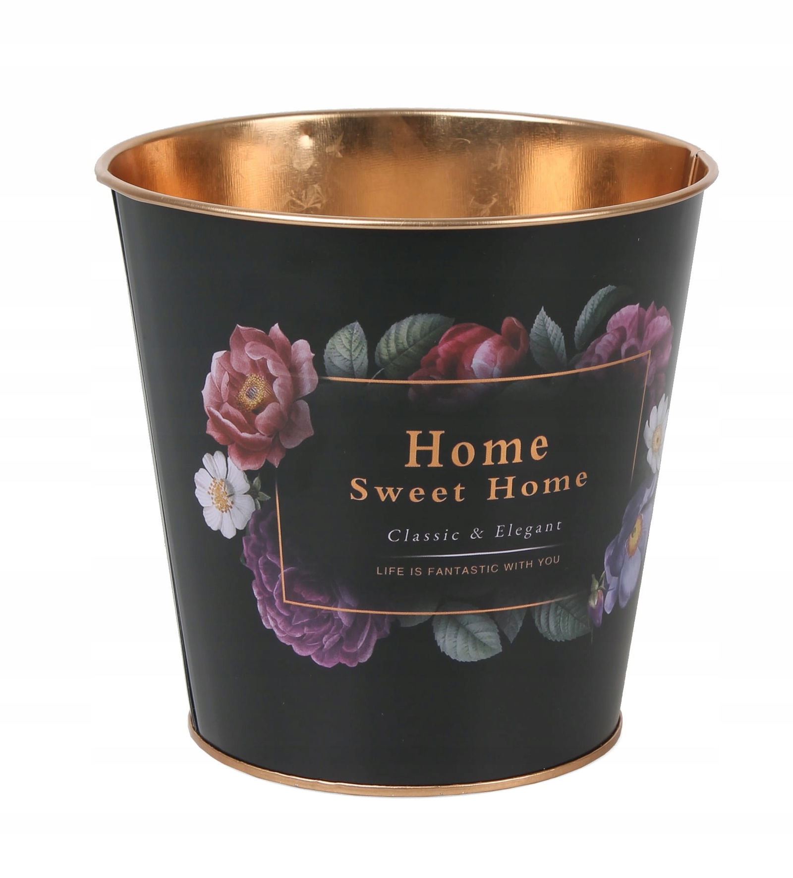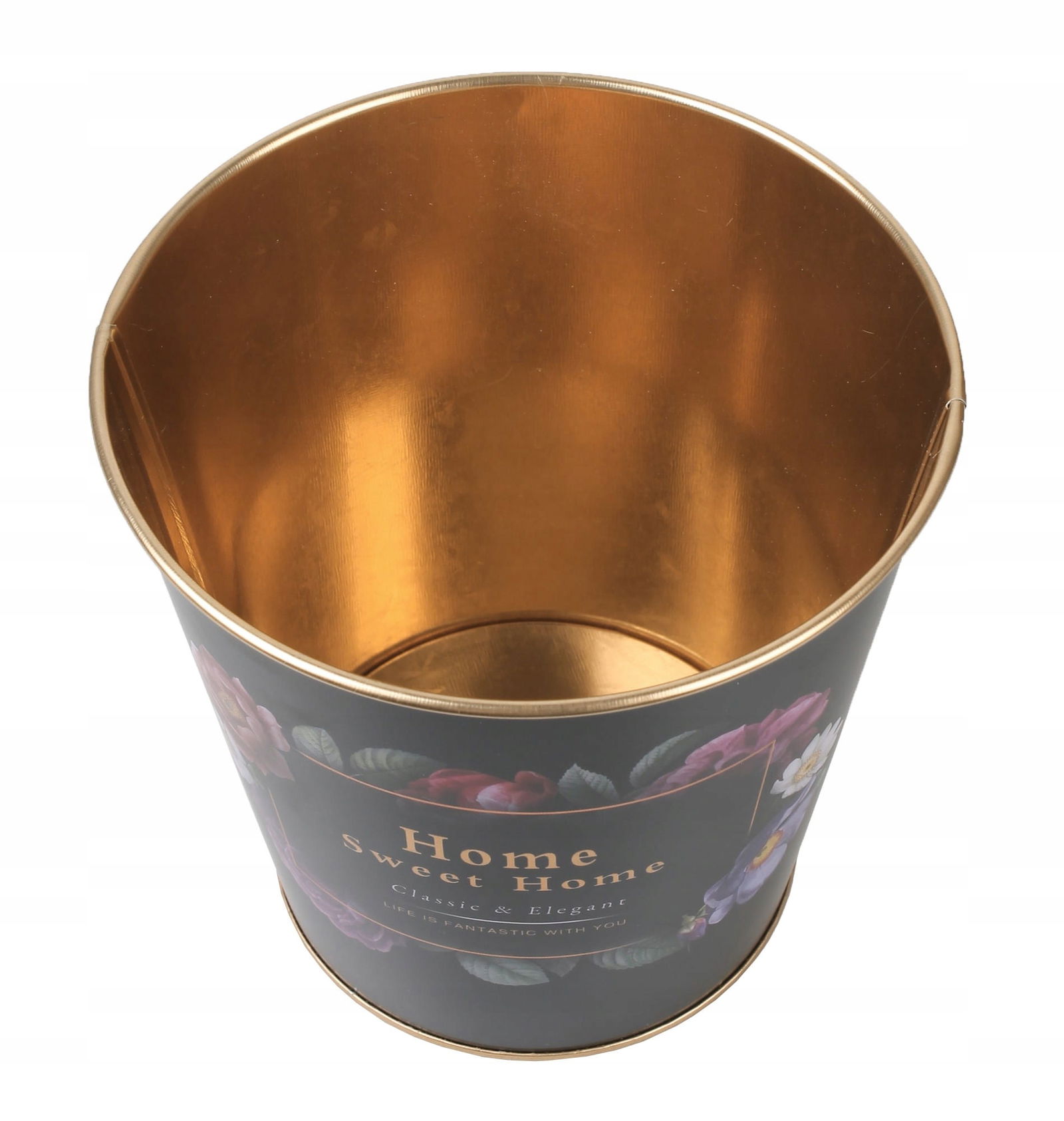 OKRĄGŁY KOSZYK METALOWY Z MOTYWEM KWIATOWYM 15x15x13,5h cm