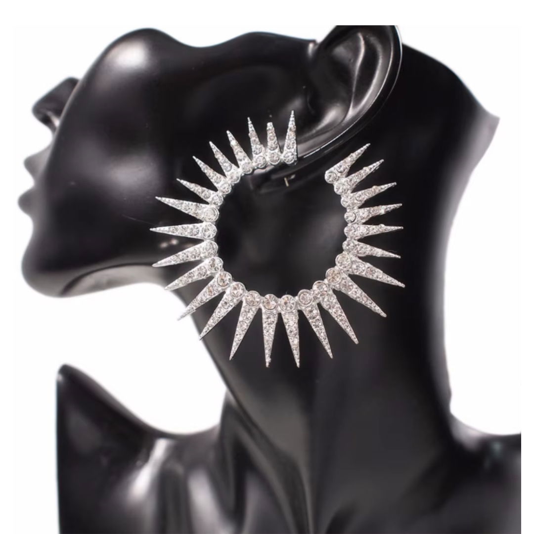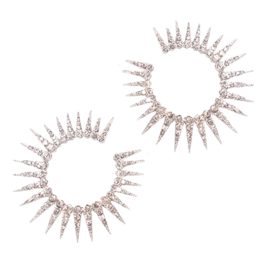 Srebrne kolczyki w stylu punk glam które wyglądają oszałamiająco i dodają pazura całej stylizacji. Wybierz je na szaloną imprezę, lub spontaniczne wyjście z koleżankami.