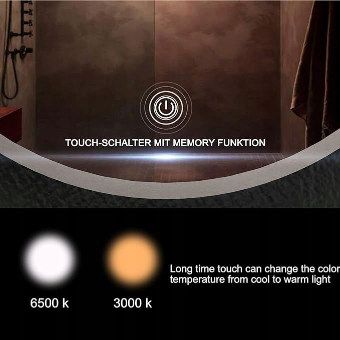 ➌▬Dotykowy przełącznik przyciskowy, najbezpieczniejsza konstrukcja, sterowanie dotykowe LED, bardzo wygodne w użyciu w mokrej łazience