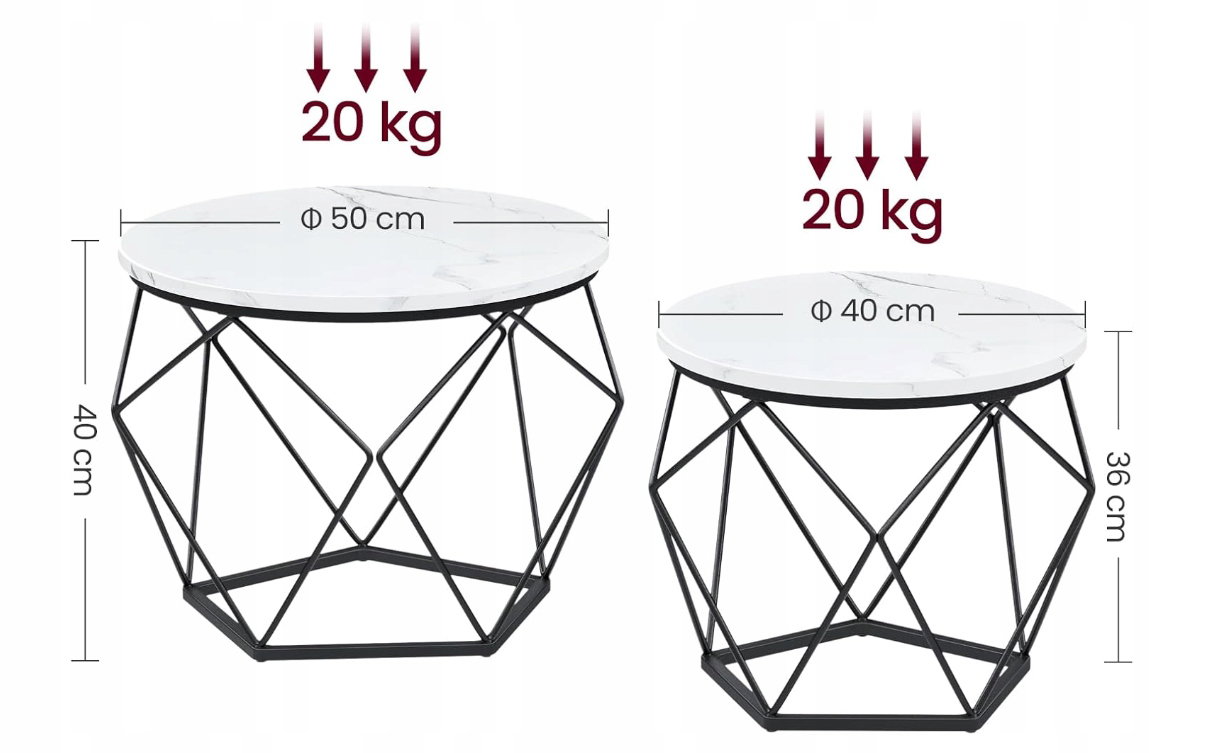 - ✴️Kompaktowe wymiary: duży stolik kawowy ma wymiary 50 x 40 cm (śr. x wys.), a mały stolik kawowy – 40 x 36 cm (śr. x wys.). Kompaktowe wymiary pasujące do małych przestrzeni sprawdzą się jako stolik na popołudniową herbatę, dekoracja lub stolik na laptopa do pracy.