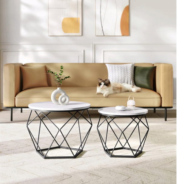 - ✴️Nowoczesny styl: stoliki kawowe w stylu nowoczesnym do salonu wprowadzą wyjątkowy akcent do Twojej przestrzeni dzięki okrągłym, białym blatom i geometrycznym, czarnym stalowym podstawom. Atrakcyjny wygląd zachwyci Twoich gości.