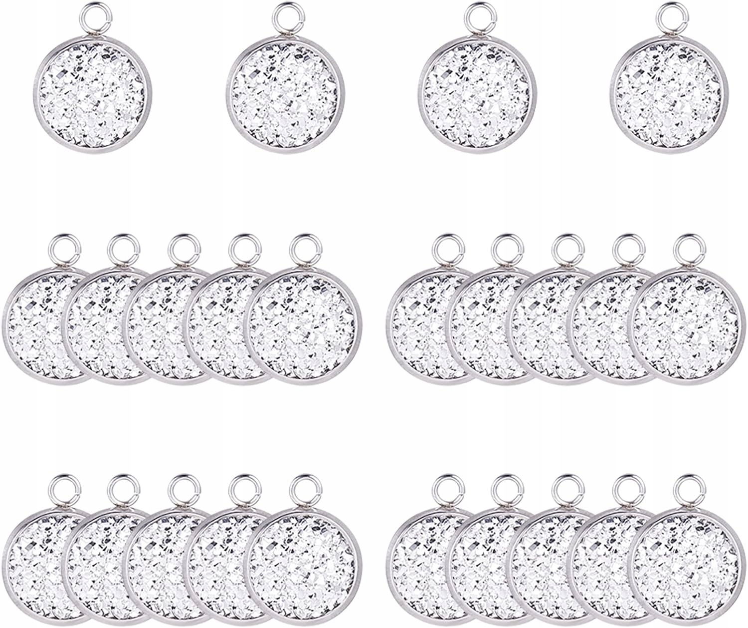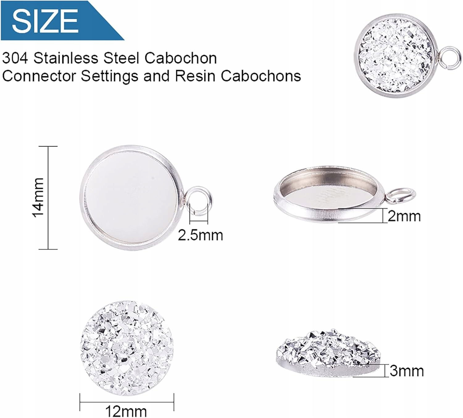 PandaHall 30 sztuk, 12 mm, 304 stal szlachetna, okrągłe zawieszki tace z 30 sztukami kaboszonów z żywicy 12 mm do produkcji biżuterii DIY