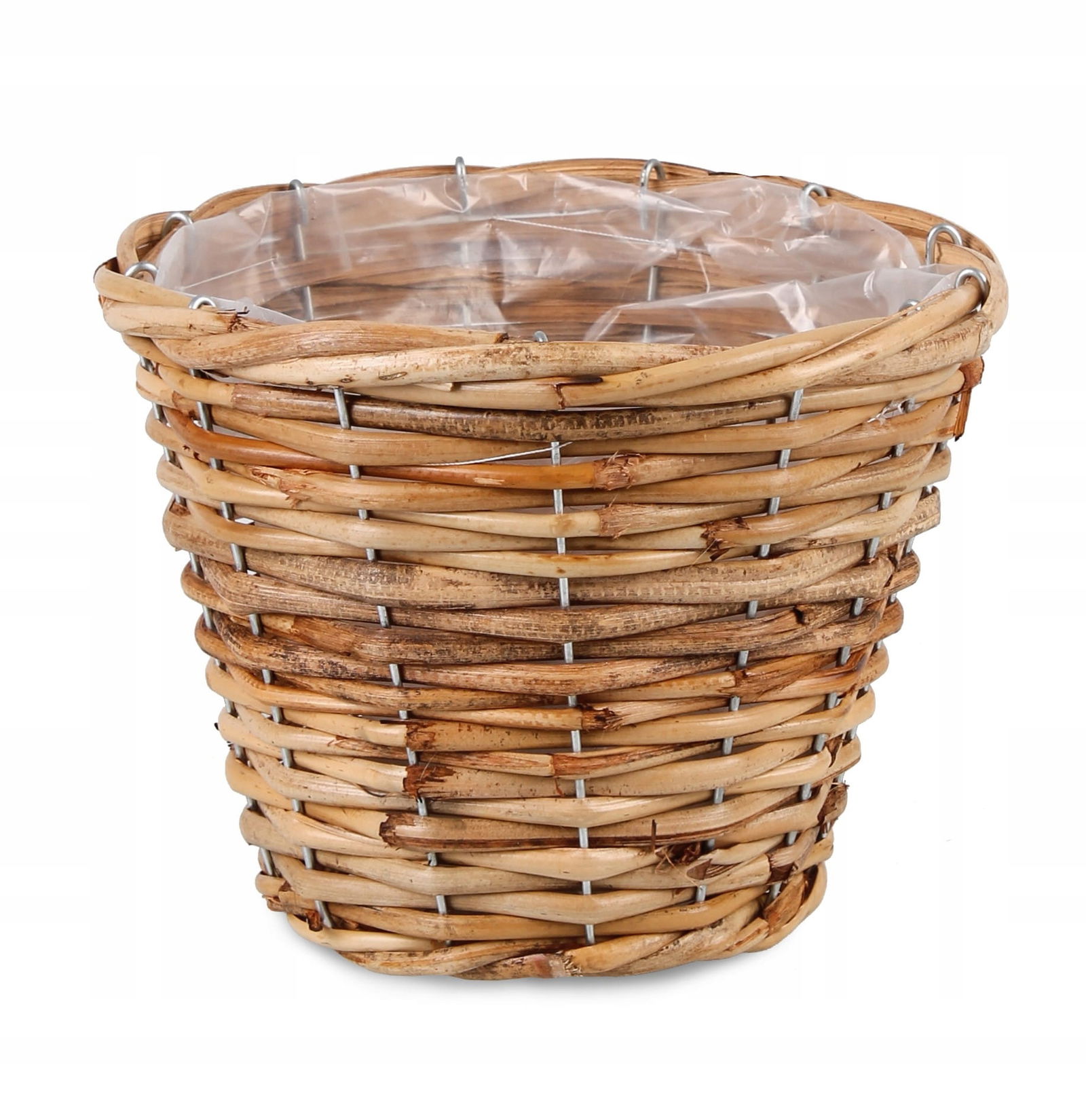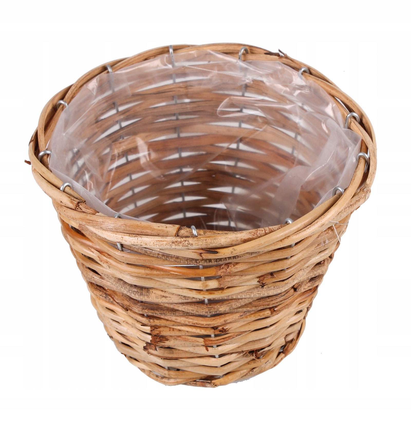 OKRĄGŁY KOSZYK RATTANOWY Z FOLIĄ NA KWIATY 19x19x15 cm