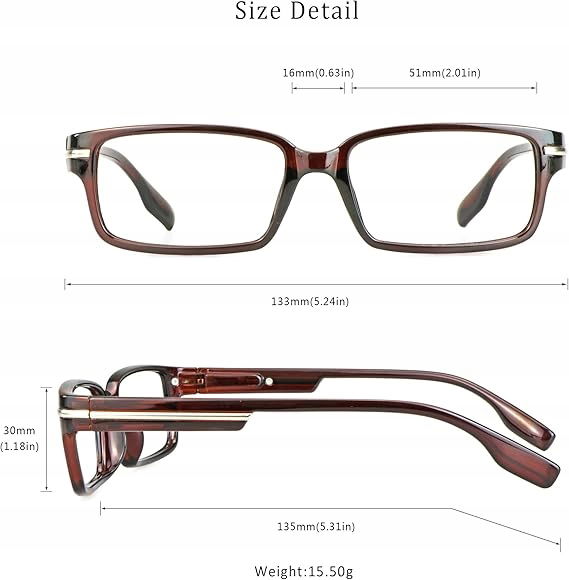 Klasyczny, prostokątny kształt oprawki, ultralekka, uniwersalny rozmiar pasujący do większości kształtów twarzy.