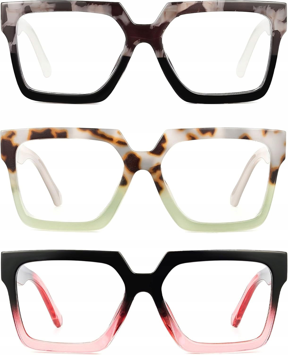 Zestaw zawiera 3 pary okularów z grubymi oprawkami, idealnych do różnych miejsc użytkowania. Dzięki dodatkowemu etui i ściereczce z mikrofibry, okulary pozostają zawsze czyste i bezpieczne.