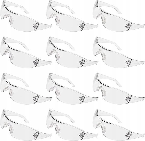 Kurtzy, zestaw 12 okularów ochronnych z przezroczystymi soczewkami i gumową nakładką na nos dla pewnego dopasowania – okulary ochronne z odpornymi na zarysowania soczewkami – okulary BHP.