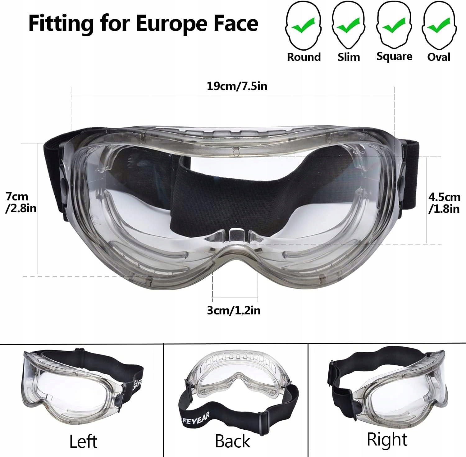 Okulary ochronne Safeyear SG007 przeciwmgielne UV dla mężczyzn