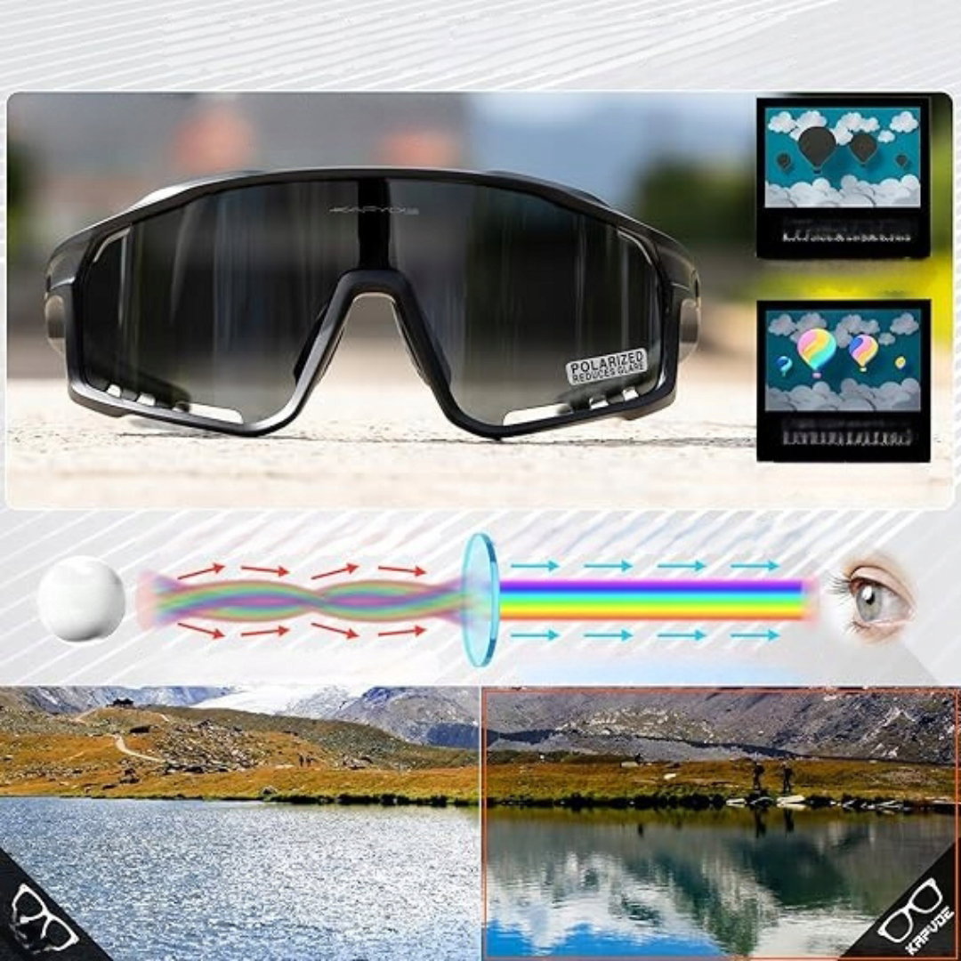 - Szerokie zastosowanie: sportowe okulary polaryzacyjne są idealne do kolarstwa górskiego, MTB, BMX, jazdy szosowej i motocyklowej, a także do biegania, baseballu, prowadzenia samochodu, wędkarstwa, narciarstwa, siatkówki, tenisa, triathlonu, wyścigów, softballu, wspinaczki, podróży, golfa, trekkingu, sportów wodnych i myślistwa. Doskonały pomysł na prezent urodzinowy lub świąteczny.