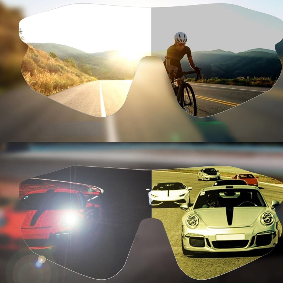 - Wysokiej jakości materiały: soczewki polaryzacyjne wykonane z odpornego na stłuczenia materiału TAC, soczewki do widzenia nocnego z wysokiej jakości PC. Lekka rama PC idealna do motocykli, roweru, biegania, narciarstwa, wspinaczki i innych aktywności na świeżym powietrzu.