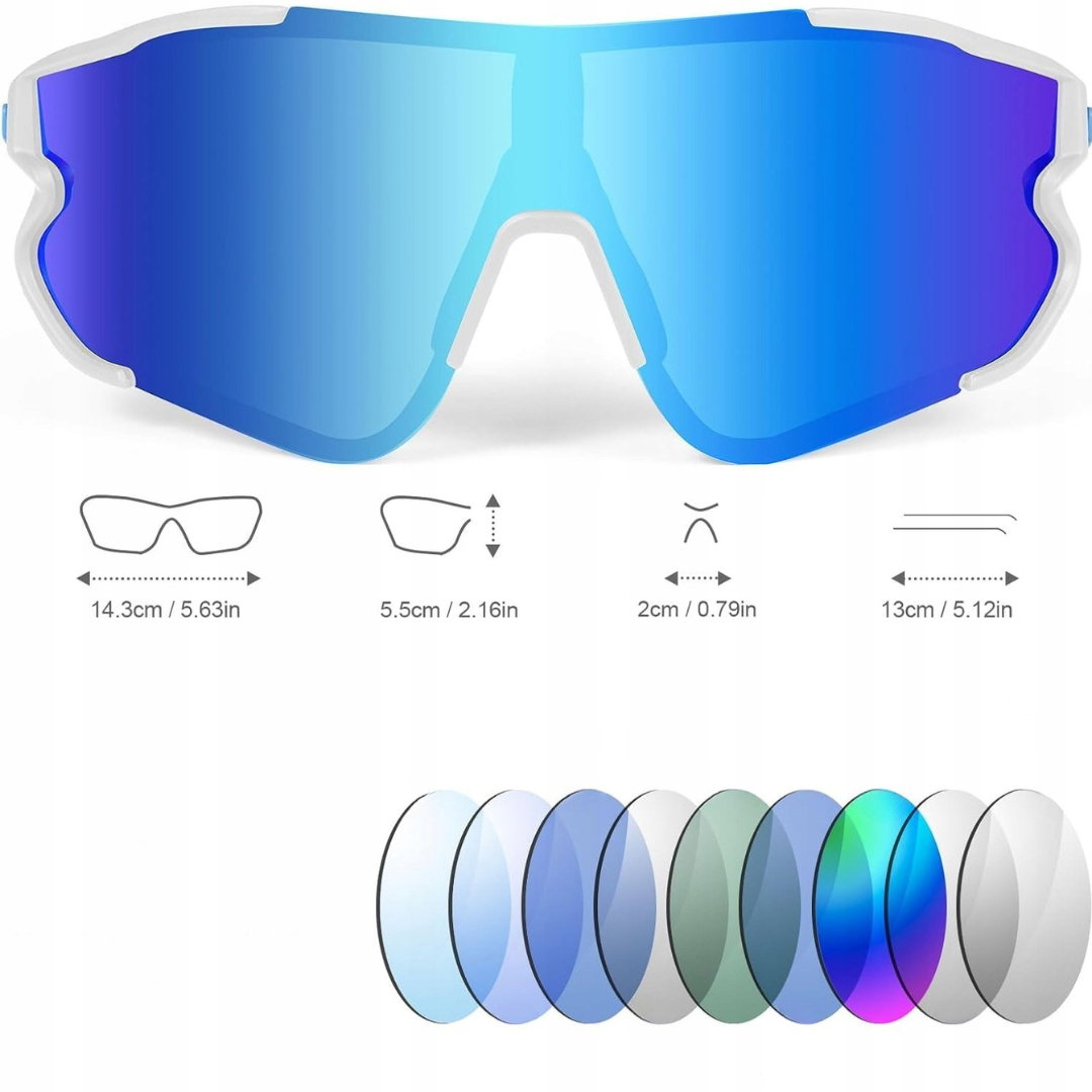 - Szerokie pole widzenia: duże oprawki zapewniają szerokie pole widzenia, całkowicie osłaniają oczy i chronią przed wiatrem oraz piaskiem. Lekka konstrukcja zmniejsza nacisk na nos i uszy, oferując maksymalny komfort i elastyczność. Doskonałe do jazdy rowerem, biegania, wędkowania i innych aktywności.