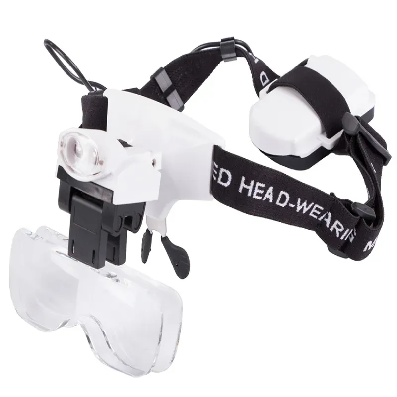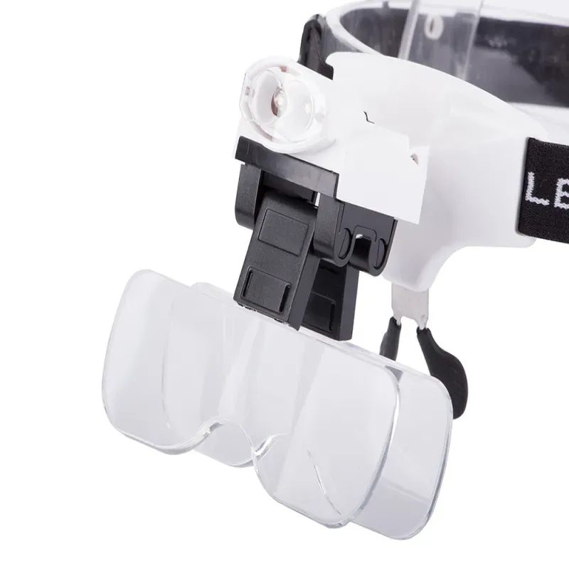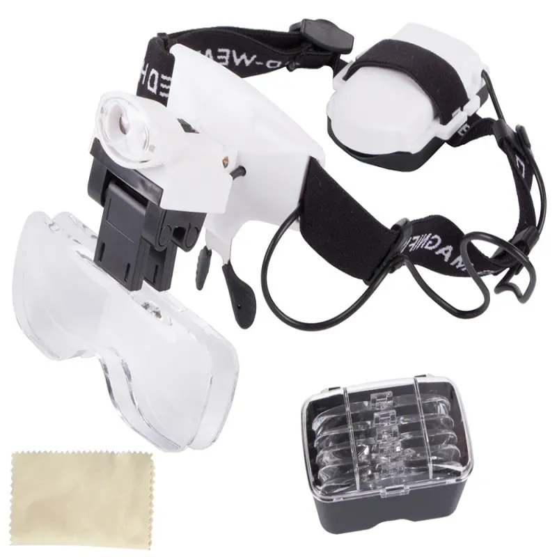 Lupa nagłowna z oświetleniem LED to praktyczne narzędzie przeznaczone do precyzyjnych prac wymagających powiększenia. Wyposażona w regulowaną opaskę na głowę i wymienne soczewki, zapewnia komfort użytkowania oraz swobodę ruchu, pozostawiając ręce wolne do pracy. Wbudowane światło LED ułatwia pracę w słabo oświetlonych warunkach, zapewniając dodatkową precyzję i widoczność. SPECYFIKACJA TECHNICZNA: