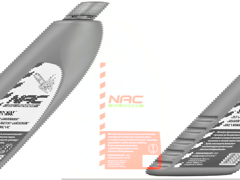 Olej mineralny przeznaczony do smarowania łańcuchów i prowadnic pił mechanicznych. Korzystnie wpływa na trwałość i żywotność elementów tnących, zapewniając im smarowanie w szerokim zakresie temperatur. Utrzymuje łańcuchy tnące i prowadnice w czystości.