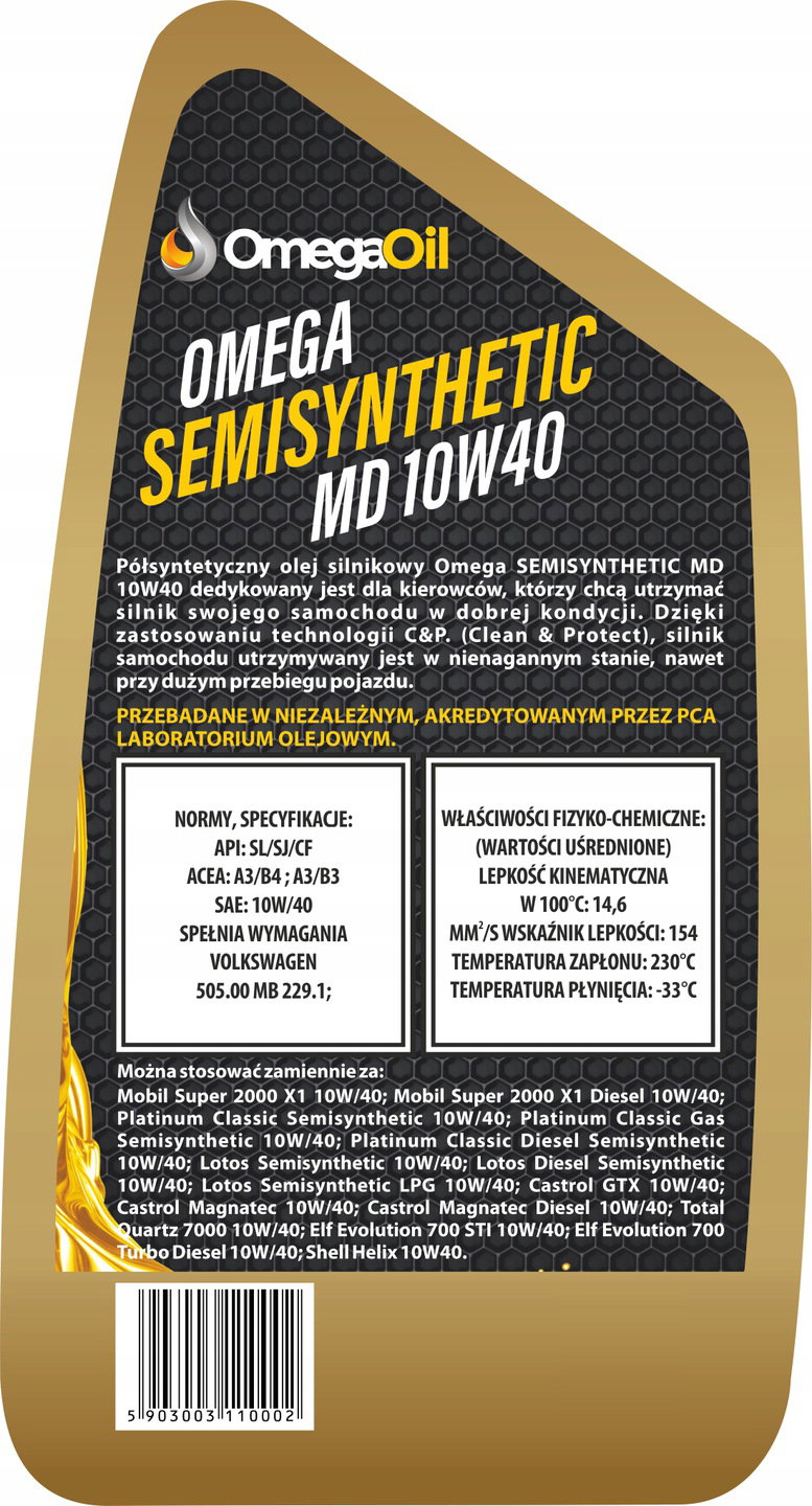 Półsyntetyczny olej silnikowy Omega SEMISYNTHETIC MD 10W40 dedykowany jest dla kierowców, którzy chcą utrzymać silnik swojego samochodu w dobrej kondycji.
