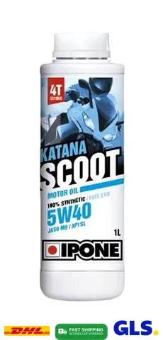 IPONE Katana Scoot 5W40 to w pełni syntetyczny olej silnikowy, stworzony specjalnie do nowoczesnych silników skuterów czterosuwowych. Zapewnia doskonałą ochronę przed zużyciem, stabilność termiczną i optymalne smarowanie w szerokim zakresie temperatur. Jego formuła przyczynia się do utrzymania czystości silnika i wydajności.